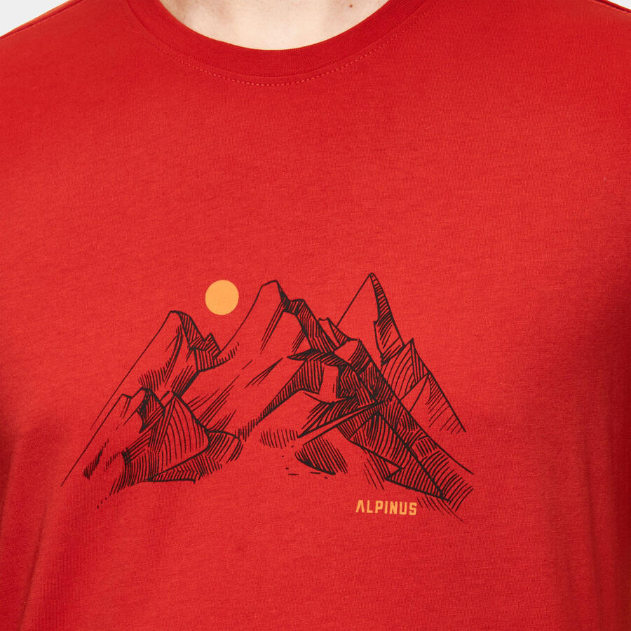 Изготовлена из экологически чистого органического хлопка без использования пестицидов. Классический прямой крой обеспечивает высокий комфорт при носке. Стильный мотив с изображением гор и восхода солнца. Мягкий, дышащий материал обеспечивает комфортную посадку. Состав и плотность: