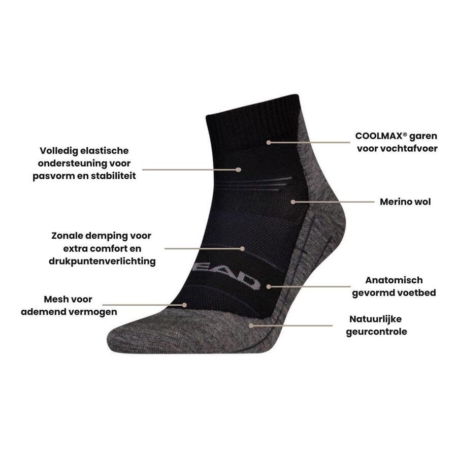 Упаковка из 3 пар носков для походов Cool Hiking QuarterДополните свой поход носками Head Cool Hiking Quarter, специально разработанными для любителей приключений. Эти походные носки сочетают в себе комфорт, поддержку и долговечность, идеально подходящие для любой поездки.