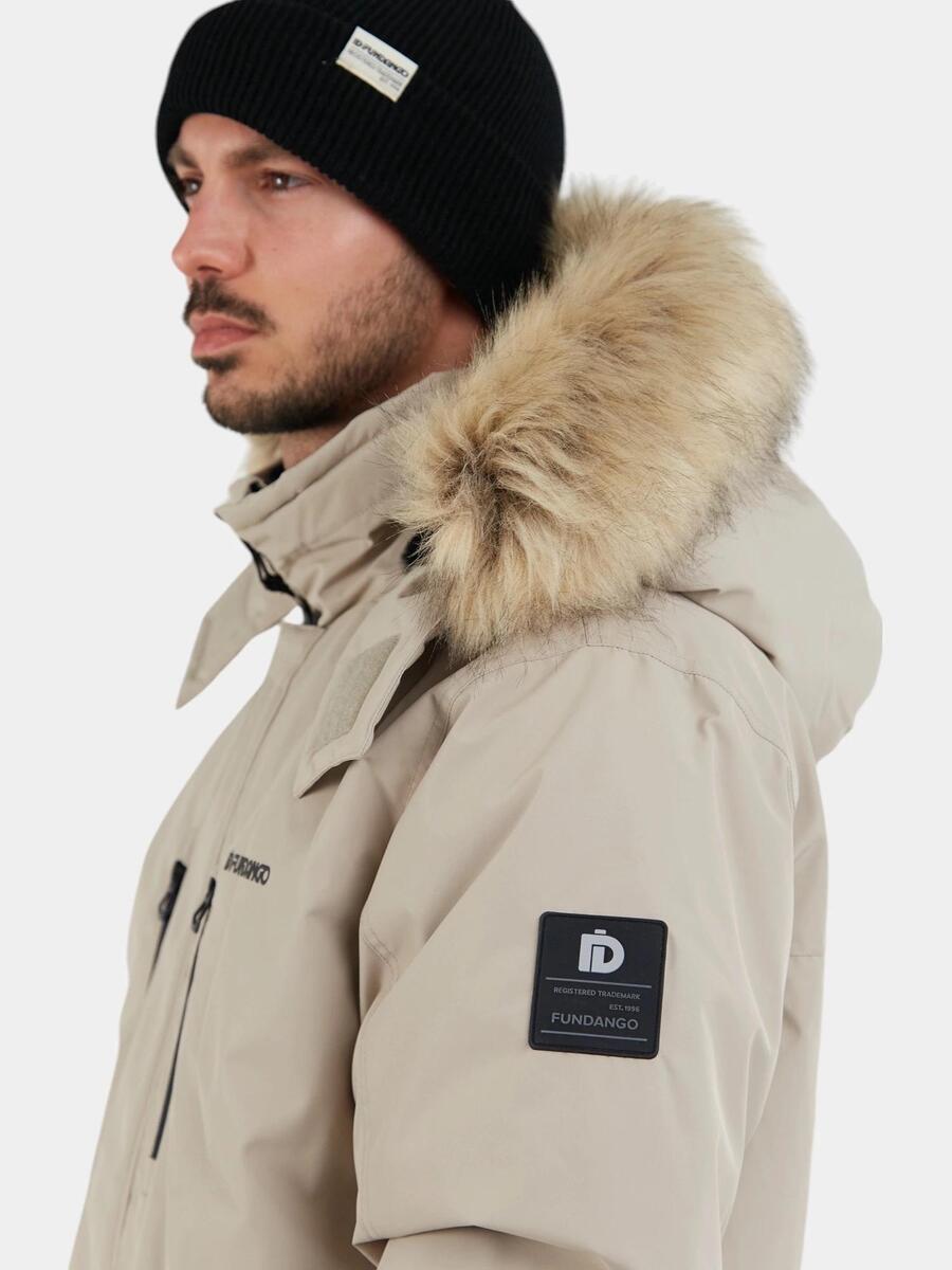 Разработанная для более низких температур, мужская зимняя куртка Fundango Spirit Parka имеет классический крой парки, обеспечивающий максимальную свободу движений и возможность многослойного ношения. Техническая ткань с водоотталкивающей пропиткой предотвращает оседание капель воды на поверхности. Вода собирается в мелкие капельки и скатывается с куртки, позволяя носить ее даже в дождливую погоду. Синтетическая подкладка сохраняет тепло в ненастную погоду, не снижая воздухопроницаемости: она помогает сохранять тепло, вырабатываемое телом, и предотвращает его потерю, обеспечивая комфорт даже в самые холодные температуры. Регулируемый фиксированный капюшон со съемной отделкой из искусственного меха на липучке защищает от холодного ветра, а потайная молния спереди позволяет легко надевать куртку и контролировать потерю тепла. Эластичные манжеты, регулируемые кнопками, плотно облегают запястья и сохраняют руки в тепле, не стесняя движений, предотвращая закатывание рукавов. Передние карманы на молнии, нагрудный карман на молнии и внутренний карман позволяют легко хранить необходимые вещи. Куртка имеет водонепроницаемость 3000 мм и воздухопроницаемость 3000 г/м²/24 ч.