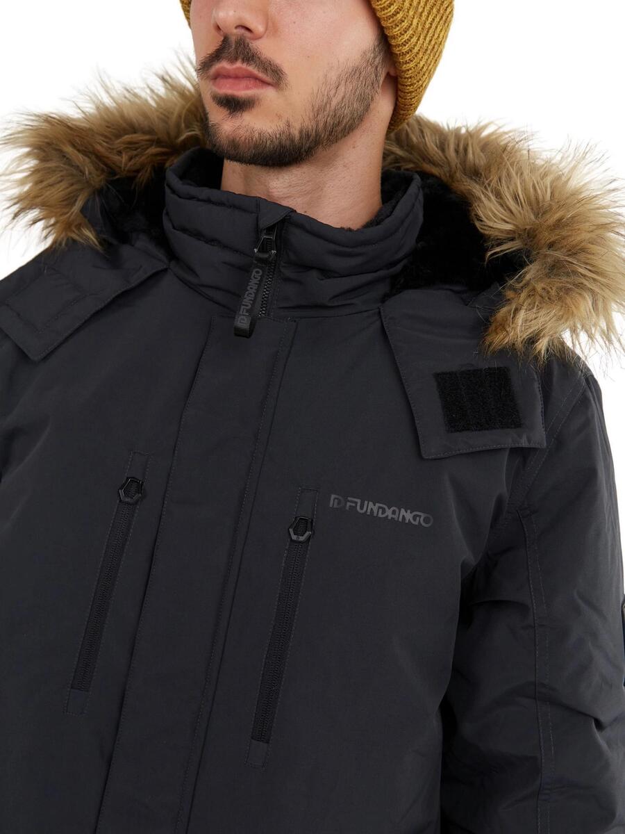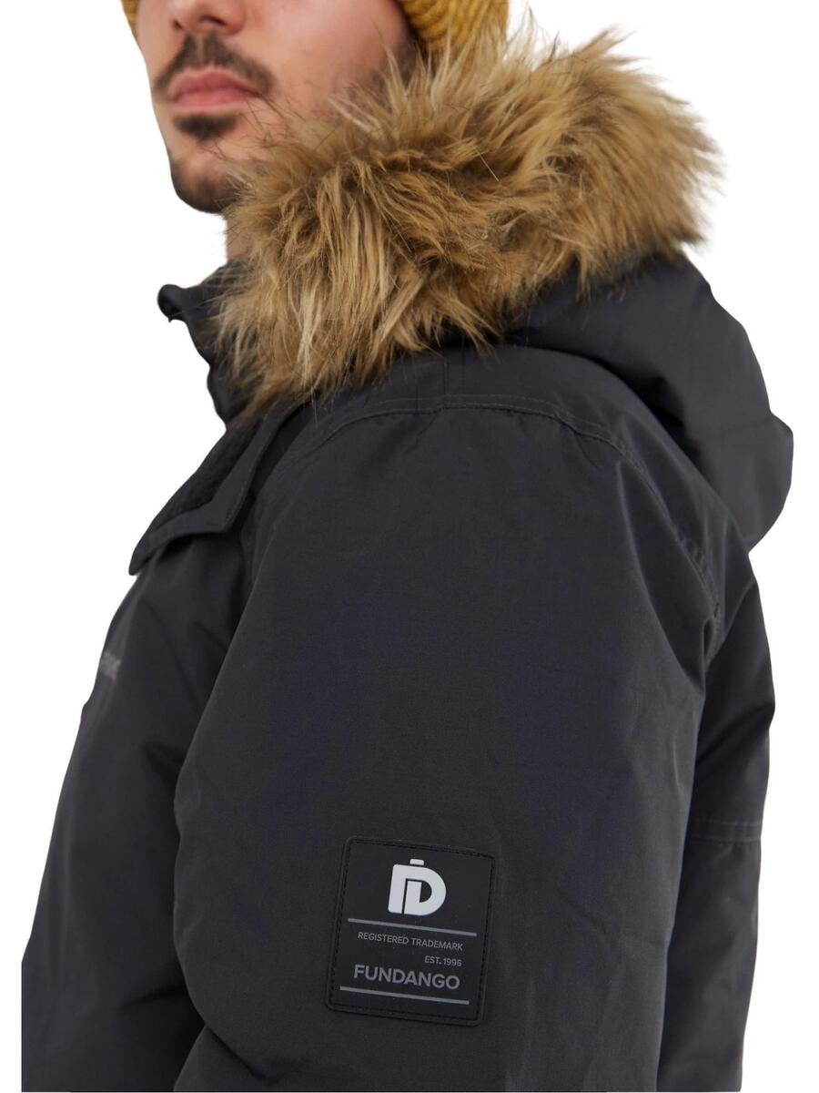 Мужская парка Fundango Spirit Parka — классическая парка бренда для зимних дней. Съемный капюшон с отделкой из искусственного меха и регулируемым шнурком защищает от холодного ветра, а основная застежка-молния с ветрозащитной планкой и кнопками позволяет легко надевать куртку. Эластичные манжеты, регулируемые кнопками, плотно облегают запястья и сохраняют руки в тепле, не стесняя движений, а также предотвращают сморщивание рукавов. Передние карманы на молнии, нагрудные карманы на молнии, внутренний карман и сетчатый карман позволяют удобно хранить необходимые вещи. Наполнитель из синтетического пера согреет вас даже в ненастную погоду, не нарушая воздухопроницаемости: он помогает сохранять тепло, вырабатываемое телом, и предотвращает его потерю, обеспечивая комфорт даже при низких температурах. Классический крой обеспечивает максимальную свободу движений и позволяет носить несколько слоев одежды. Слои одежды. Водоотталкивающая обработка предотвращает оседание капель воды на ткани. Вода собирается в мелкие капли и скатывается с куртки, позволяя носить её даже в сырую погоду. Вы можете смело надевать эту вещь в стиле спортивно-шикар на любое мероприятие. Куртка водонепроницаема до 3000 мм и воздухопроницаема до 3000 г/м²/24 ч.