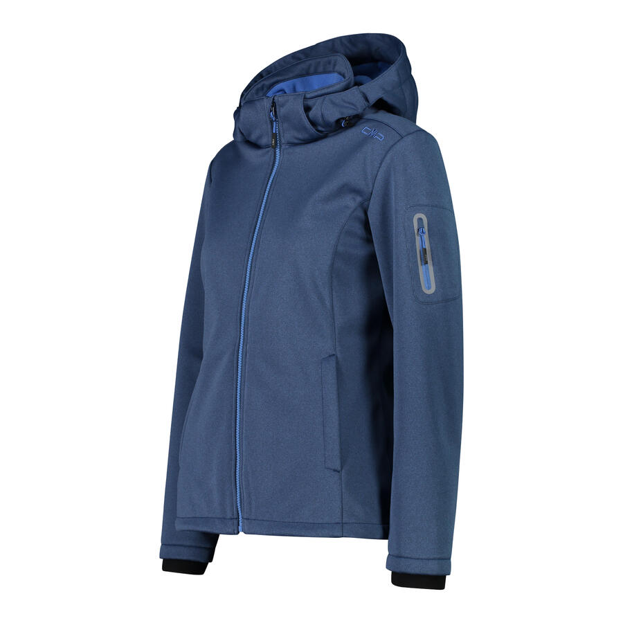 Женская куртка CMP Softshell с капюшоном на молнии. Классическая куртка из коллекции CMP для активного отдыха, защитит вас как в горах, так и в городе. Внешний материал Softshell сочетается с мягким и тёплым флисом, который приятно прилегает к коже. Между ними расположена мембрана Clima Protect, обеспечивающая водонепроницаемость и воздухопроницаемость (водонепроницаемость 7000, MVP 1000). Куртка имеет съёмный заправляющийся капюшон и множество деталей, таких как термосварной карман на рукаве, два боковых кармана с сетчатой подкладкой, а также молнию и двойной шнурок по нижнему краю. Технология: Clima Protect; водоотталкивающая пропитка. Вес: 665 г. Длина: 67 см. Материал: 100% полиэстер.