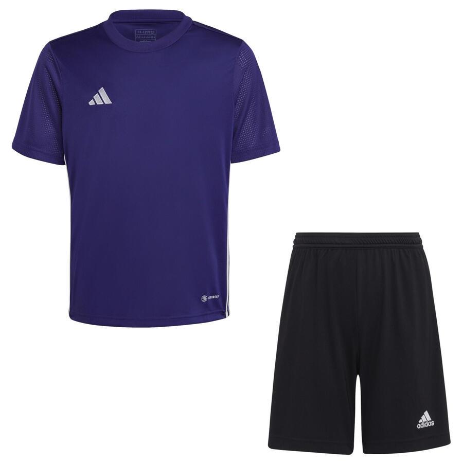Комплект футболок и шорт adidas Kids' Set Tabela 23. Комплект футболок, состоящий из футболки и шорт. Джерси: в этой минималистичной футболке adidas с классическими тремя полосками по бокам вы можете полностью сосредоточиться на своей цели. Влагопоглощающая технология AEROREADY и сетчатые рукава обеспечивают ощущение комфорта и сухости на протяжении всей игры. Этот продукт является частью наших обязательств по прекращению пластиковых отходов и изготовлен из 100% переработанных материалов. Приталенный крой. Круглый вырез. AEROREADY. Сетчатые рукава. Шорты: куда бы вы ни отправились, в этих футбольных шортах adidas Entrada 22 вы будете хорошо экипированы. Они отличаются чистым классическим дизайном и технологией AEROREADY, которая сохраняет вас сухими и свежими. Эластичный пояс с регулируемым шнурком обеспечивает плотную посадку. Классический крой. Эластичный пояс со шнурком. Влагопоглощающая технология AEROREADY. Материал: 100% полиэстер.