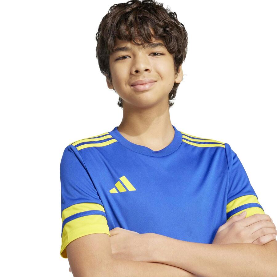 Детская футболка adidas Squadra 25. В этой футболке adidas для детей и подростков вы почувствуете себя частью команды на футбольном поле и продемонстрируете свою сплоченность. Она имеет круглый вырез в рубчик и культовые три полоски на плечах. В остальном, она приятная на ощупь и позволяет разместить символику вашей команды. Кроме того, влагопоглощающая технология AEROREADY гарантирует приятную сухость, позволяя вам сосредоточиться на игре, не отвлекаясь. Изделие изготовлено из 100% переработанных материалов. Повторное использование существующих материалов помогает нам сократить отходы, снизить зависимость от невозобновляемых ресурсов и уменьшить углеродный след нашей продукции. Классический крой. Круглый вырез в рубчик. AEROREADY. Место для размещения отдельных деталей. Материал: 100% полиэстер.