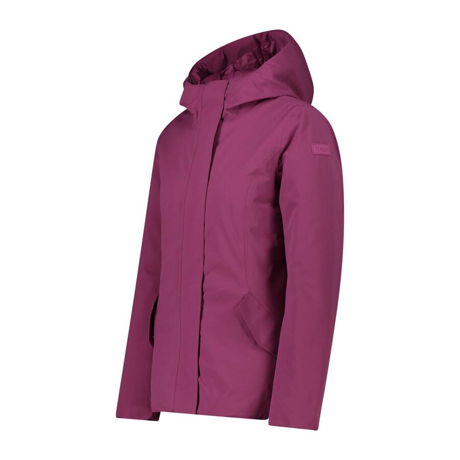 Женская куртка CMP Fix Hood. Куртка с несъемным капюшоном и утеплителем из Feel Warm Flock – синтетического пуха, полученного из мягкого, легко сжимаемого пуха. Гладкая внешняя поверхность обеспечивает классический, лаконичный вид, идеально подходящий для осенних дней в горах и городе. Мембрана Clima Protect обеспечивает водонепроницаемость (Waterproof 5000) и воздухопроницаемость (MVP 5000), а полностью проклеенные швы и водоотталкивающая внешняя обработка без ПФУ создают дополнительный барьер от проникновения воды. Два боковых кармана на молнии. Материал: 100% полиэстер.