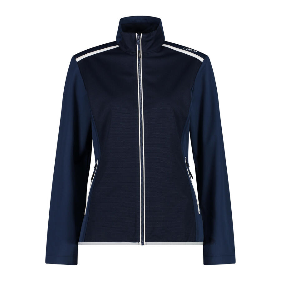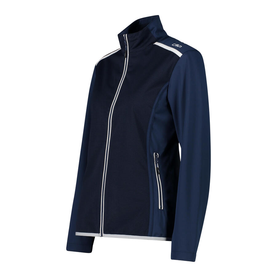 Женская куртка софтшелл CMP. Лёгкая, ветро- и водонепроницаемая куртка из софтшелла. Куртка имеет высокий воротник с защитой подбородка и боковые карманы на молнии. WP: 5000. MVP: 5000. Материал: 100% полиэстер.