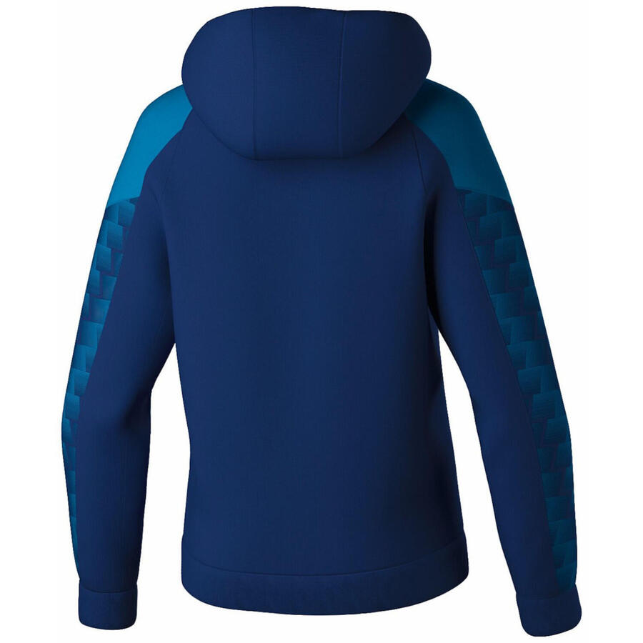 Женская толстовка с капюшоном EVO STAR от Erima. Удобная толстовка для спорта и повседневной носки. Мягкий функциональный материал. Крой реглан и эластичные вставки обеспечивают полную свободу движений. Встроенный карман-кенгуру. Капюшон на подкладке со шнурком. Широкие манжеты и низ в рубчик. Стильный дизайн рукавов с 3D-эффектом. Контрастная окантовка на рукавах. Приталенный крой. Материал: 100% полиэстер.