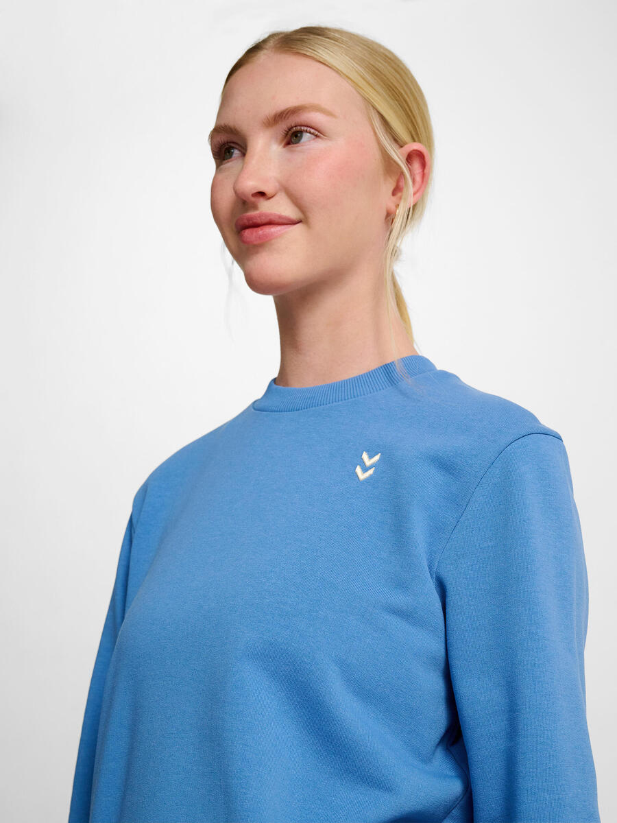 Женская толстовка Hmlpulse W Sweat Crewneck выполнена из мягкого трикотажа и украшена вышитым шевронным логотипом на груди. Она имеет классический крой и ребристые манжеты, горловину и нижний край.
