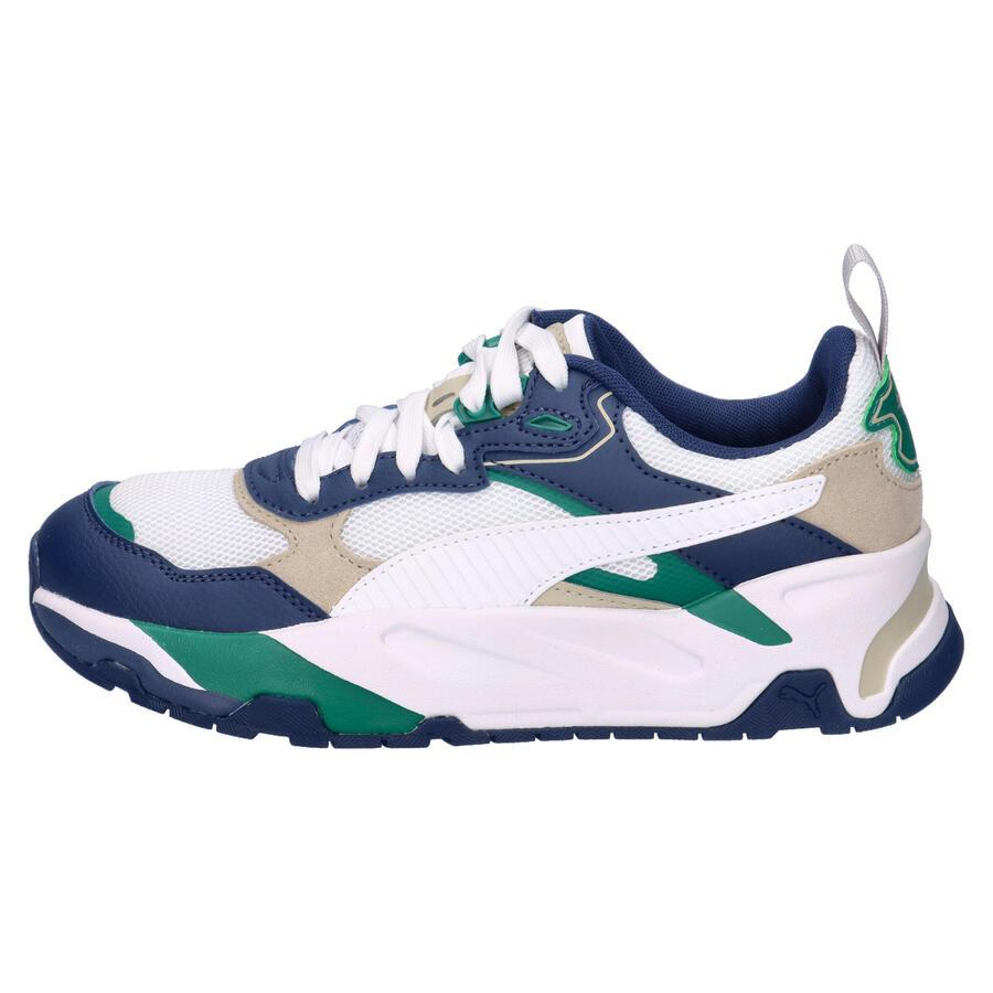 Кроссовки Trinity для подростков. Мощь на каждый день. Эти кроссовки с игрой текстур и форм создают футуристический образ. Амортизирующая промежуточная подошва обеспечивает максимальный комфорт. Trinity основана на эстетике Futro от PUMA, переосмысливая классические идеи в современном ключе. Верхняя часть выполнена из сетки с прошитыми кожаными и синтетическими накладками для прочности и комфорта. Колодка обеспечивает комфорт в течение всего дня. Дизайн промежуточной подошвы дополнен угловатыми деталями и окрашенными элементами, которые делают ее главной героиней дизайна, включая сплошную резиновую подошву. Стелька SoftFoam+ обеспечивает отличную амортизацию и оптимальный комфорт при каждом шаге. Верх: кожа, другие материалы. Подкладка и стелька: текстиль. Подошва: другие материалы.