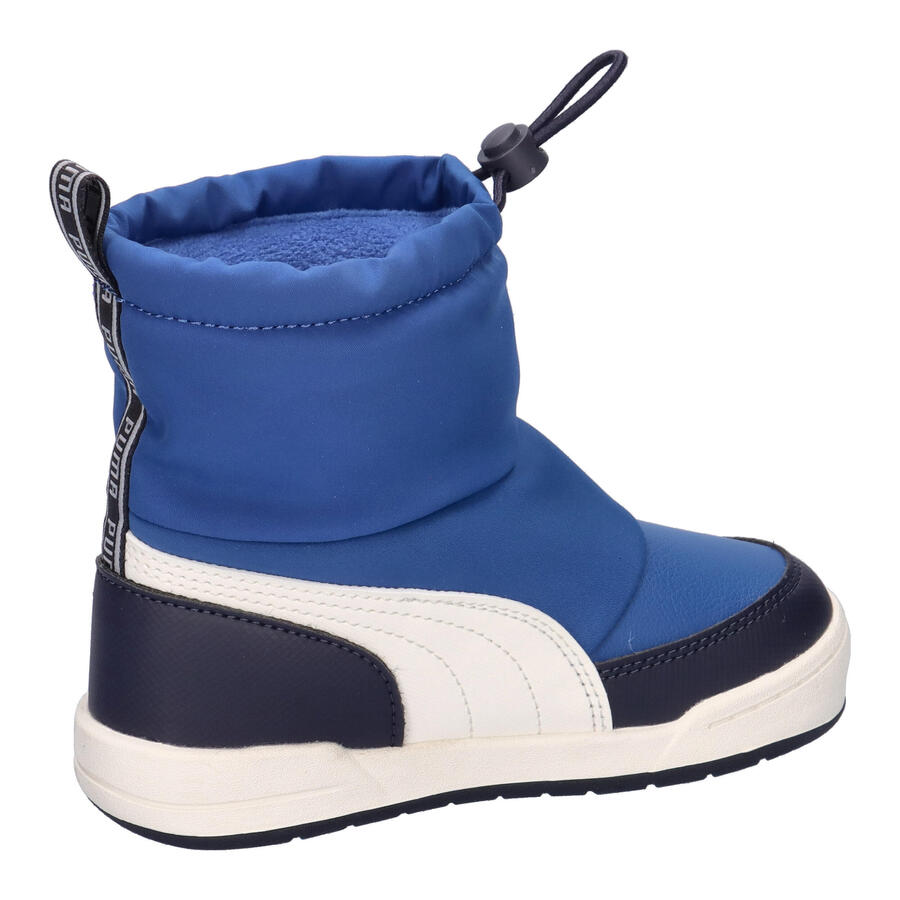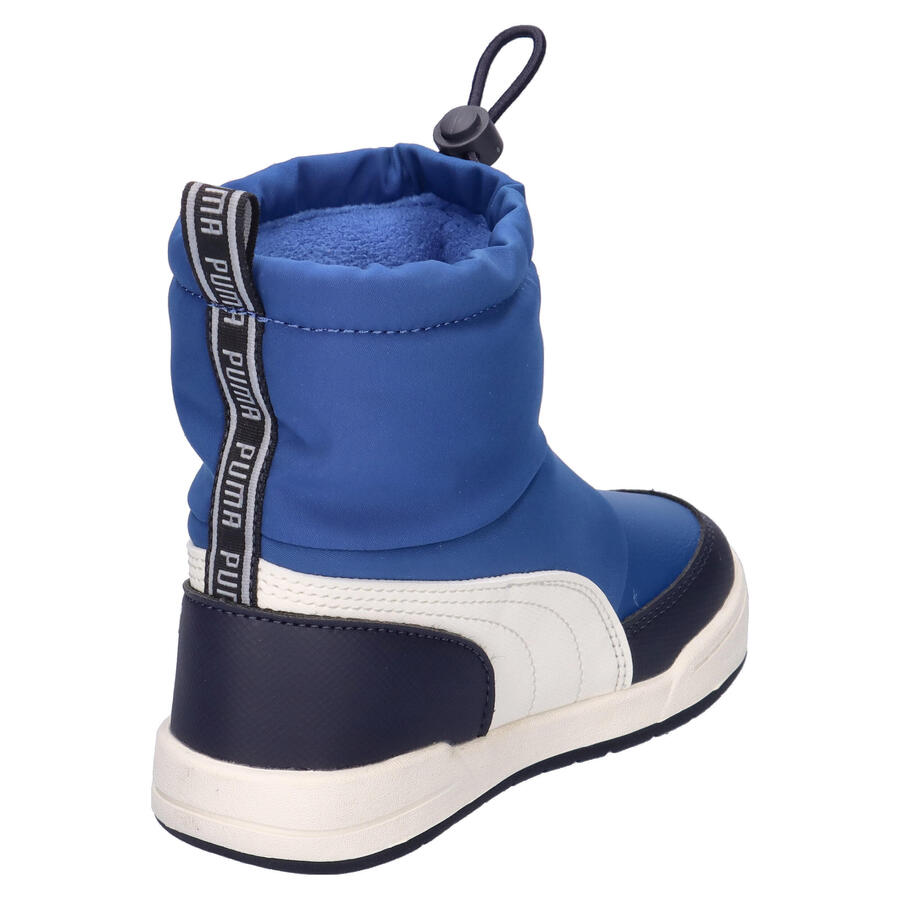 Детские зимние ботинки Puma Multiflex 2 Boot AC Inf. Семейство Multiflex возвращается – с новыми моделями: низкой, средней и высокой высоты. Ботинки Multiflex 2 сохранят маленькие ножки в тепле, сухости и комфорте во время зимних прогулок. Мягкий бортик и эластичная внутренняя лента обеспечивают надежную посадку, а прочная резиновая подошва с глубокими канавками обеспечивает отличное сцепление со скользкими поверхностями. Благодаря водоотталкивающему покрытию верха и флисовой подкладке до носка эти ботинки обеспечивают отличную защиту от непогоды. Благодаря специальной тесьме и регулируемой застежке-фиксатору ботинки Multiflex 2 легко надевать и снимать. Идеально подходят для активных детей, любящих исследовать мир. Верх: другой материал, текстиль. Подкладка и стелька: текстиль. Подошва: другой материал.