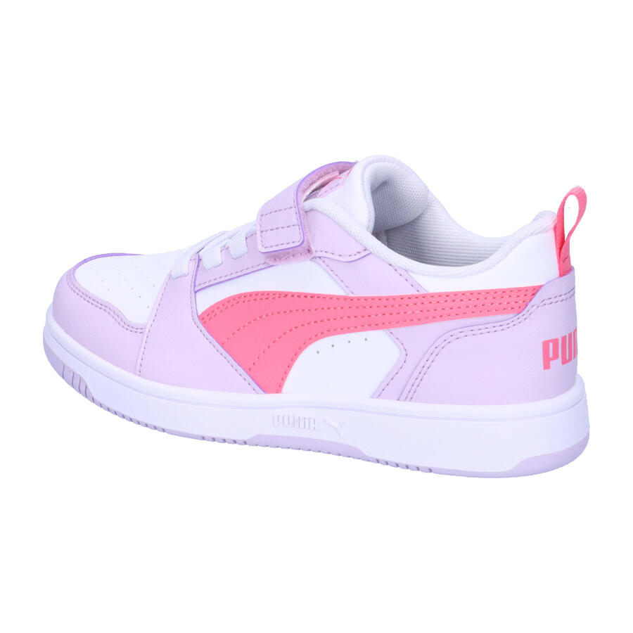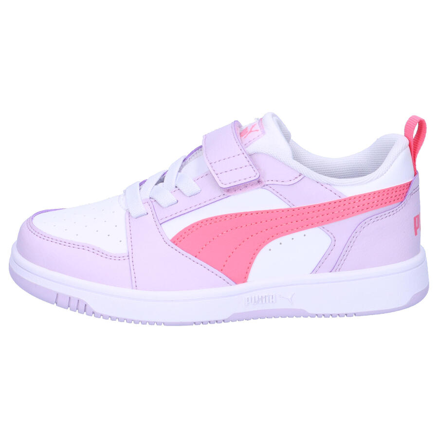 Детские кроссовки Puma Rebound V6 Lo AC+ PS. Эти кроссовки Puma Rebound V6, вдохновлённые спортом, позволят вам резвиться на игровой площадке. Верх из переработанных материалов и прочная подошва выдержат любые испытания маленьких спортсменов, а воротник средней высоты обеспечивает необходимую поддержку для кроссоверов и ловли товарищей по команде. Тщательно продуманный верх. Резиновая промежуточная подошва и подметка. Воротник средней высоты обеспечивает поддержку и защиту лодыжки во время занятий спортом и активного отдыха. Эластичная застёжка на липучке. Напечатанный логотип PUMA на язычке и фирменные полоски Formstrip по бокам. Верх: другой материал. Подкладка и стелька: текстиль. Подошва: другой материал.