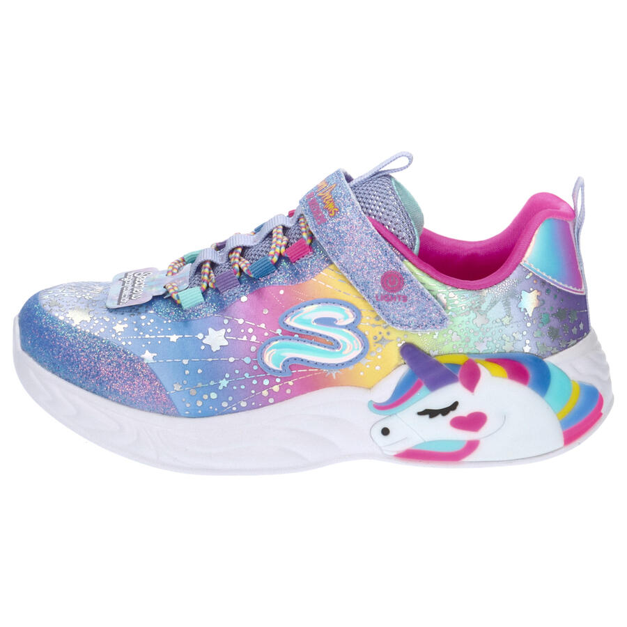 Кроссовки Skechers для девочек UNICORN DREAMS. Очаруйте свой день волшебством единорога в кроссовках Skechers S-Lights: Unicorn Dreams. Светящиеся кроссовки с градиентным синтетическим верхом с блестками и мягкой комфортной стелькой. Функция включения/выключения. Дизайн единорога с тисненым принтом на пятке. Синтетический верх с градиентным принтом и блестками. Мягкая комфортная стелька. Шнуровка-резинка и застежка на липучке. Амортизирующая и поддерживающая межподошва. Гибкая резиновая подошва с цепким протектором. Каблук 2,5 см. Логотип Skechers Magical Collection. Верх: другой материал. Подкладка и стелька: текстиль. Подошва: другой материал.