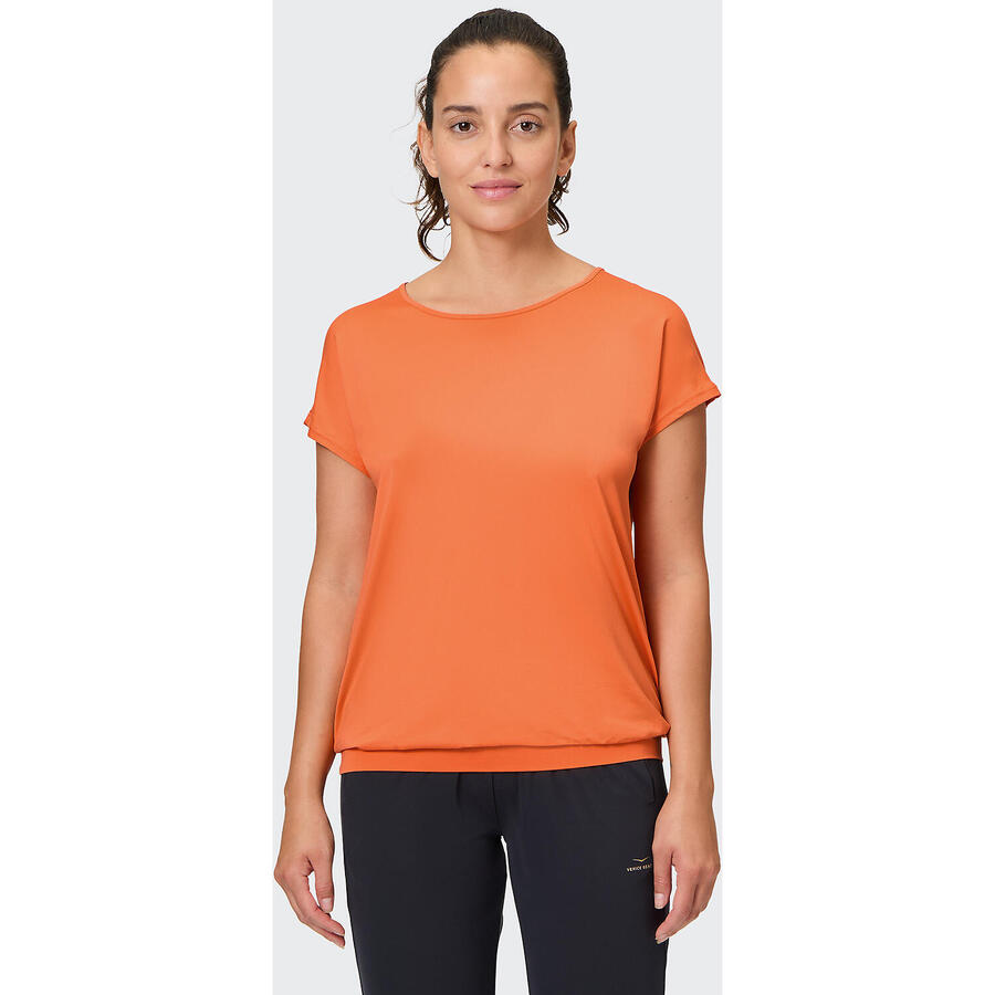 Функциональность и комфорт для оптимальной производительности. Женская спортивная футболка RYAH с облегающим кроем и круглым вырезом! Женская спортивная футболка RYAH от VENICE BEACH характеризуется облегающим кроем и широким поясом для максимального комфорта. Будь то отдых на диване, изнурительная тренировка или бранч в выходной день, спортивная футболка RYAH может многое предложить как многофункциональная одежда для активного отдыха. Для безусловных тренировок без ограничений, она отводит влагу от тела во время упражнений и приятно согревает в прохладную погоду. Материал приятно мягкий и располагает к хорошему самочувствию. Женская спортивная футболка RYAH — это прекрасное сочетание комфорта, стиля и функциональности.