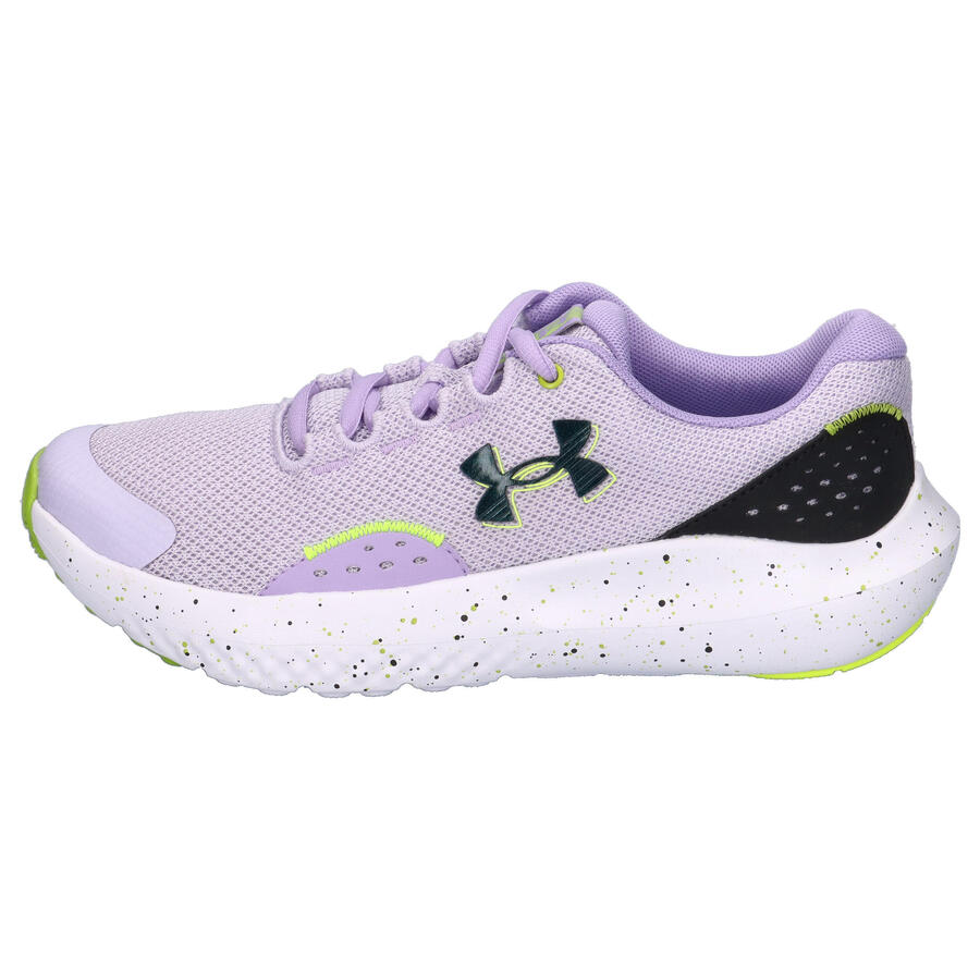 Кроссовки для девочек Under Armour Surge 4. Эти кроссовки обеспечивают амортизацию и комфорт, при этом оставаясь лёгкими и дышащими. Почему? Когда вы жмёте педаль газа до упора, это именно то, что вам нужно. Лёгкий дышащий сетчатый верх с синтетическими накладками для дополнительной прочности и устойчивости. Накладка из термопластичного полиуретана (TPU) на пятке для дополнительной прочности и поддержки. Оптимизированная набивка в области воротника для максимального комфорта. Стелька из ЭВА во всю длину для дополнительного комфорта и индивидуальной посадки. Амортизирующая промежуточная подошва из ЭВА невероятно лёгкая и обеспечивает отзывчивый бег. Прочная подошва со слегка приподнятыми резиновыми выступами для лучшего сцепления. Верх: другой материал; текстиль. Подкладка и стелька: текстиль. Подошва: другой материал.