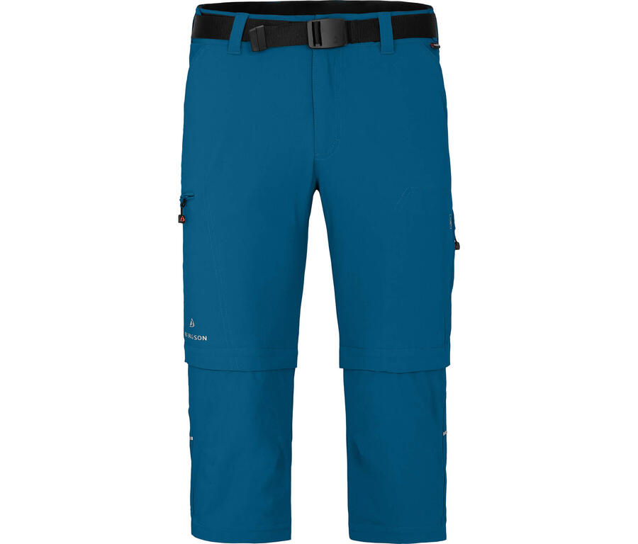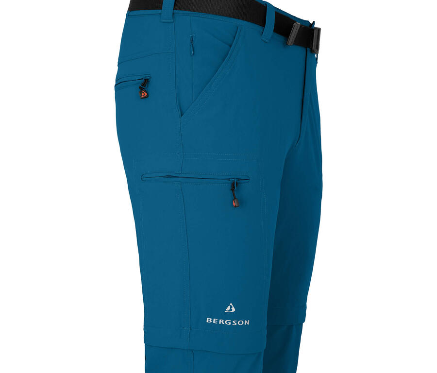 Универсальные, биэластичные мужские брюки для активного отдыха и походов с двойной застежкой-молнией и Т-образной молнией из водоотталкивающего, быстросохнущего материала. Многофункциональные мужские брюки для активного отдыха, походов, треккинга, велоспорта или функциональные брюки для отдыха. Ткань Dryprotec для быстрого отвода влаги и быстрого высыхания. Биэластичная ткань для идеальной посадки и свободы движений. Двойная функция застежки-молнии (бермуды и длина 3/4). Функция Т-молнии с застежкой-молнией на штанине. 2 боковых кармана, 2 кармана на штанине на молнии. 1 задний карман на молнии, 1 защитный карман на молнии. Пояс на флисовой подкладке со шлевками для ремня и ремнем. Универсальные брюки 3 в 1 с отстегивающимися штанинами особенно популярны и полезны для длительных походов. Эти мужские функциональные брюки из биэластичного материала - отличный выбор. Эти очень быстросохнущие брюки для походов и отдыха на природе можно быстро стирать между использованиями. Их можно отстегнуть на бермуды и короткие брюки. Т-образная молния внизу штанины особенно практична, поэтому вам не придётся снимать обувь, чтобы их расстегнуть. Среди других деталей: эластичный пояс с ремнём, карманы для безопасности, карманы на штанинах и задние карманы.