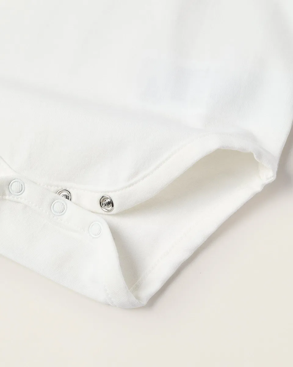 Боди белого цвета с принтом Винни-Пуха для новорожденного. Сделано из хлопка с небольшой добавкой эластина для большего комфорта и свободы движений. Вырез «Питер Пэн». Кнопки на спинке и в паховой области для легкого одевания. Внутренняя этикетка с печатным рисунком, чтобы не раздражать кожу. Мягкое и очаровательное боди!