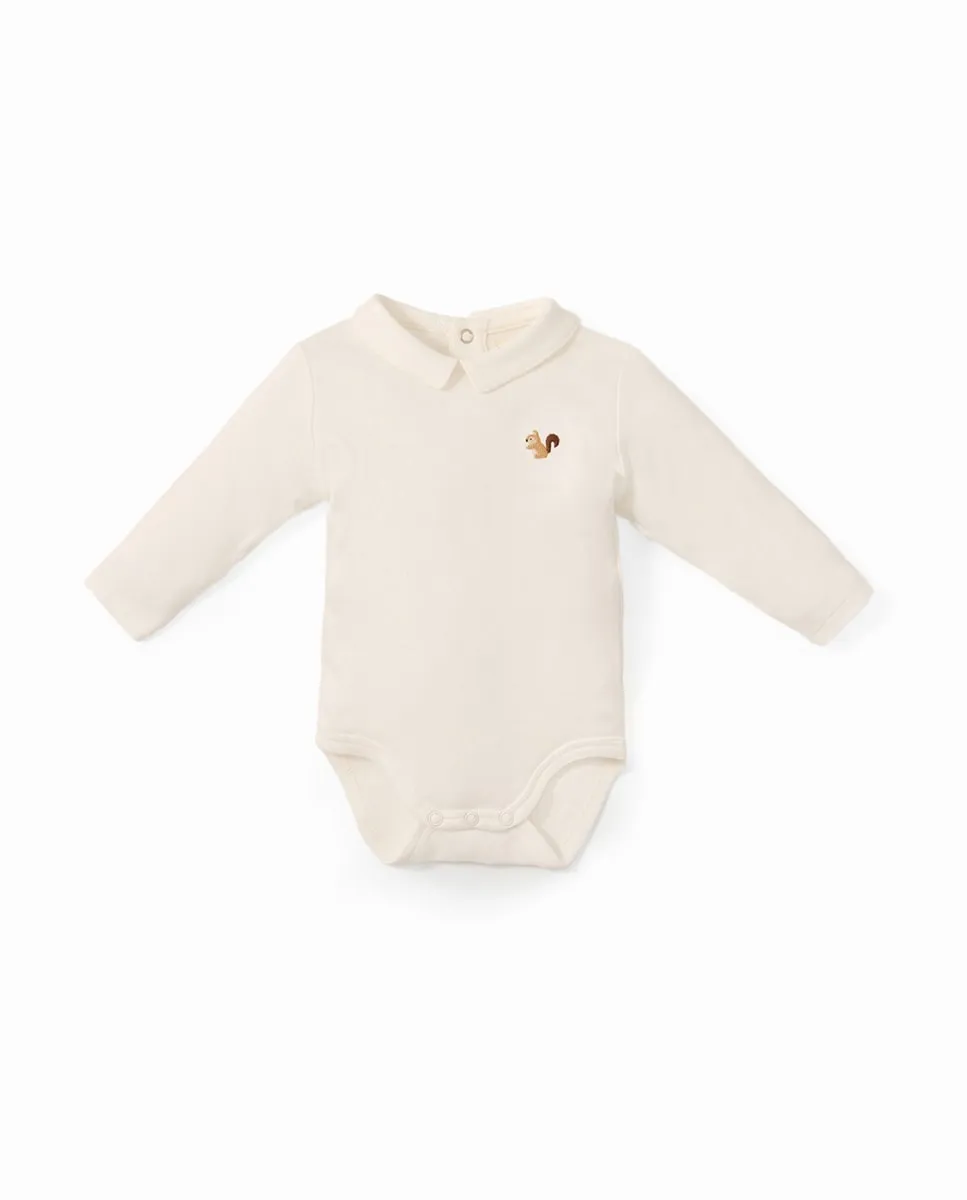 Боди с длинными рукавами, воротником поло и вышивкой. 100% хлопок