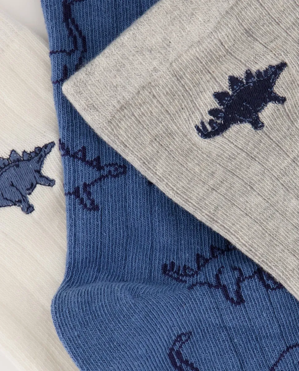 Набор из 3 детских носков в рубчик с узором Cotton Juice, синий