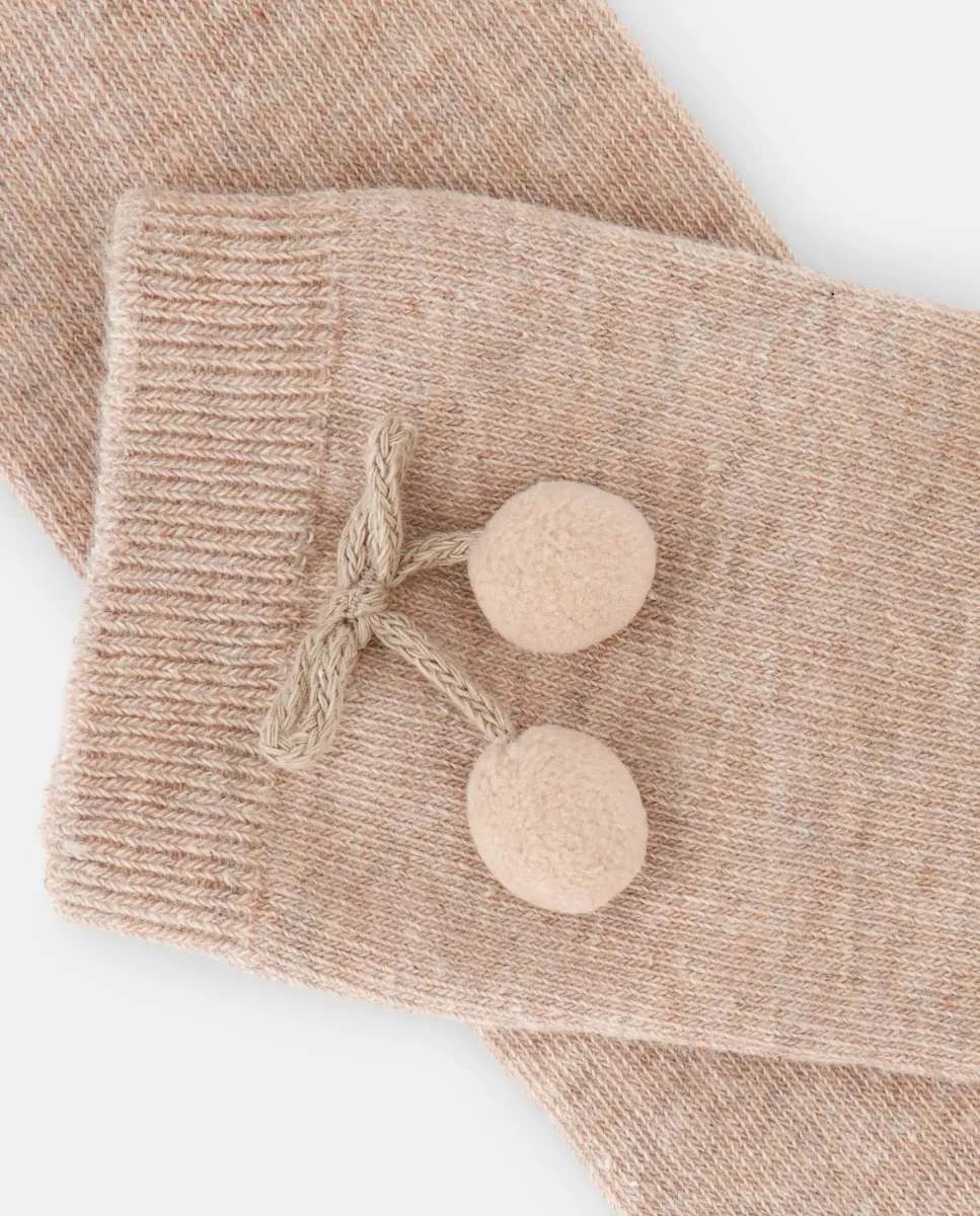 Высокий носок с помпоном для девочки Cotton Juice, бежевый
