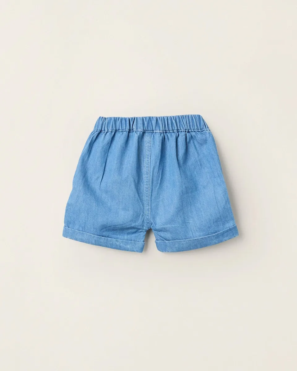 Синие короткие шорты из легкого денима для новорожденных, 100% хлопок. Эластичный и удобный пояс. Декоративные карманы. Вечный выбор!