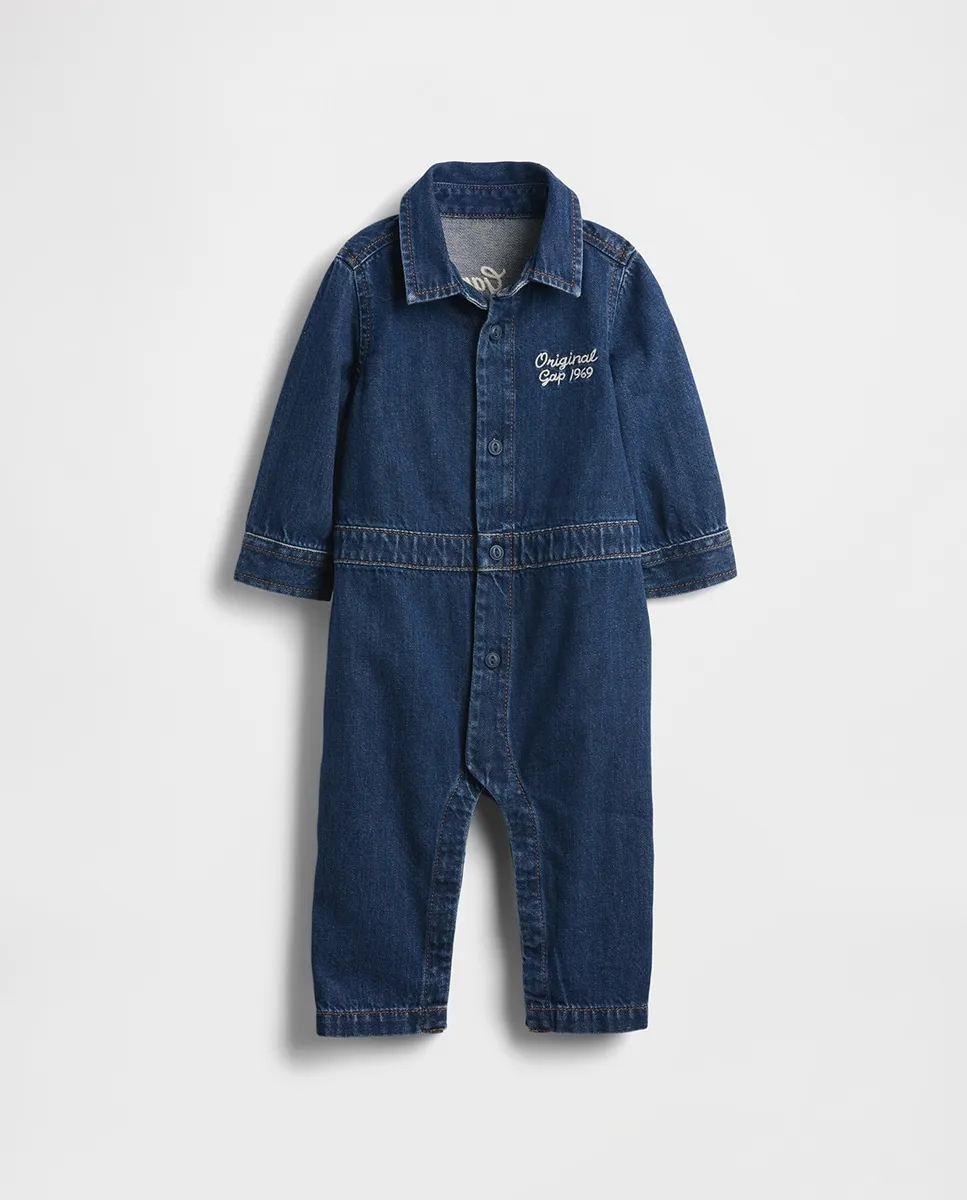 Детский комбинезон из джинсовой ткани с длинными рукавами Gap, синий