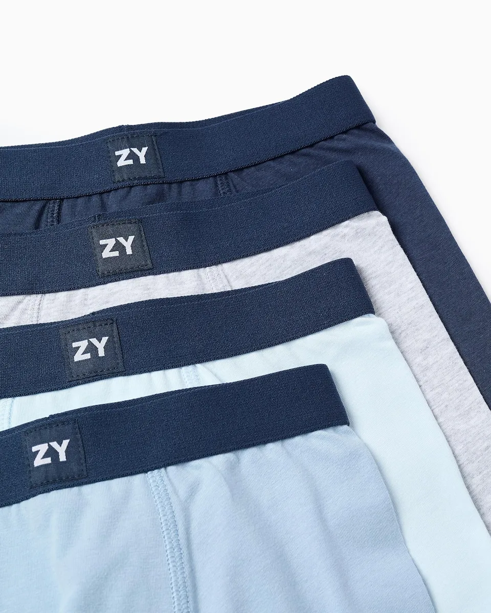 Набор из 4 однотонных эластичных детских боксеров Zippy, синий/серый