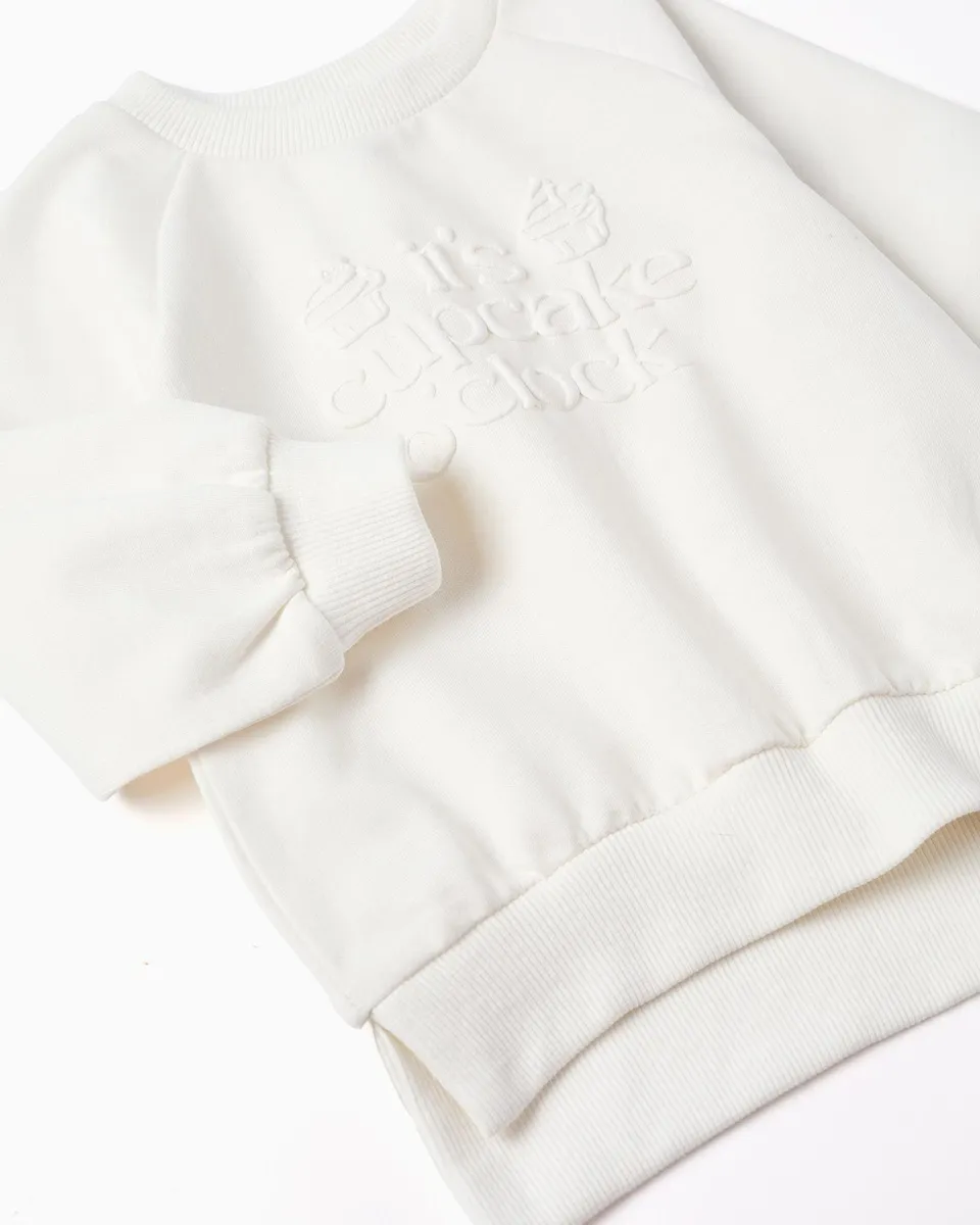 Толстовка для девочки, 100% хлопок с рельефным принтом Zippy, белый