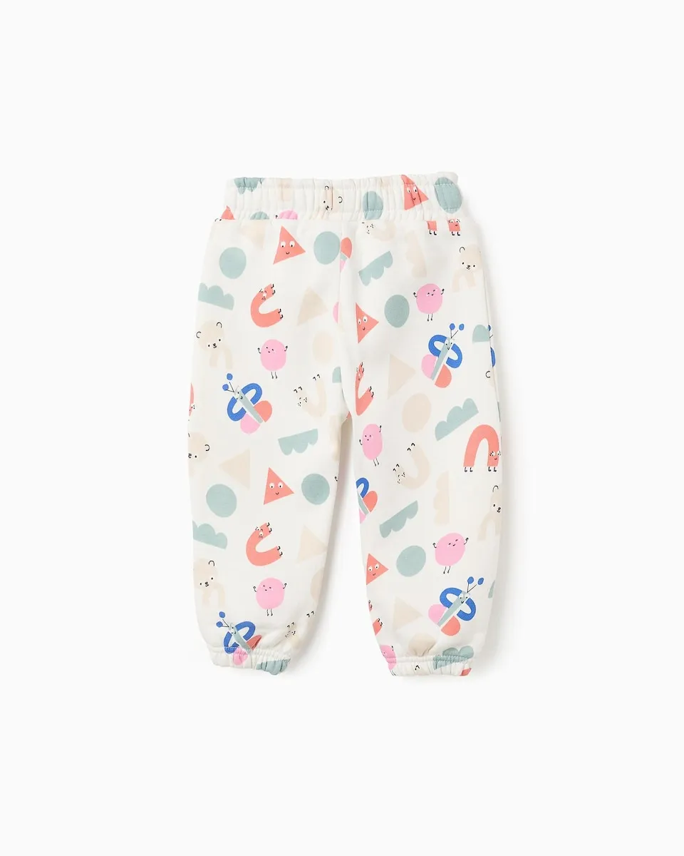 Белые джоггеры для маленькой девочки, с мягкой внутренней стороной для большего тепла. Яркий рисунок с формами и персонажами, вдохновленный движением Баухаус. Эластичный пояс, регулируемый внутри. Эластичные манжеты для идеальной посадки и мешковатого стиля. Практичный, уютный и оригинальный вариант!
