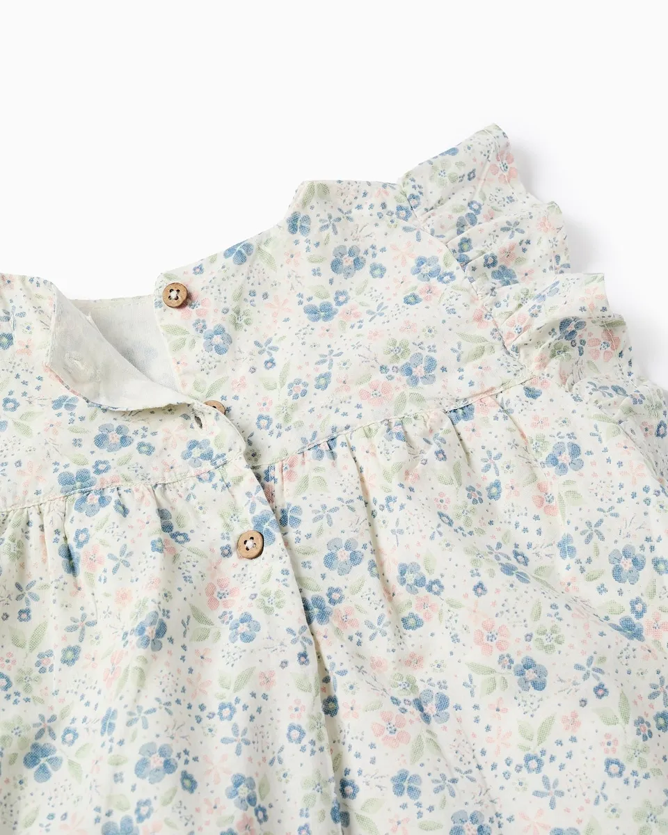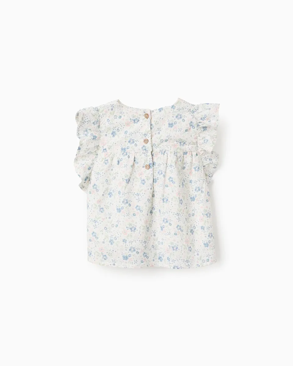 Блузка для девочки, 100% хлопок, с цветочным принтом Zippy, белый