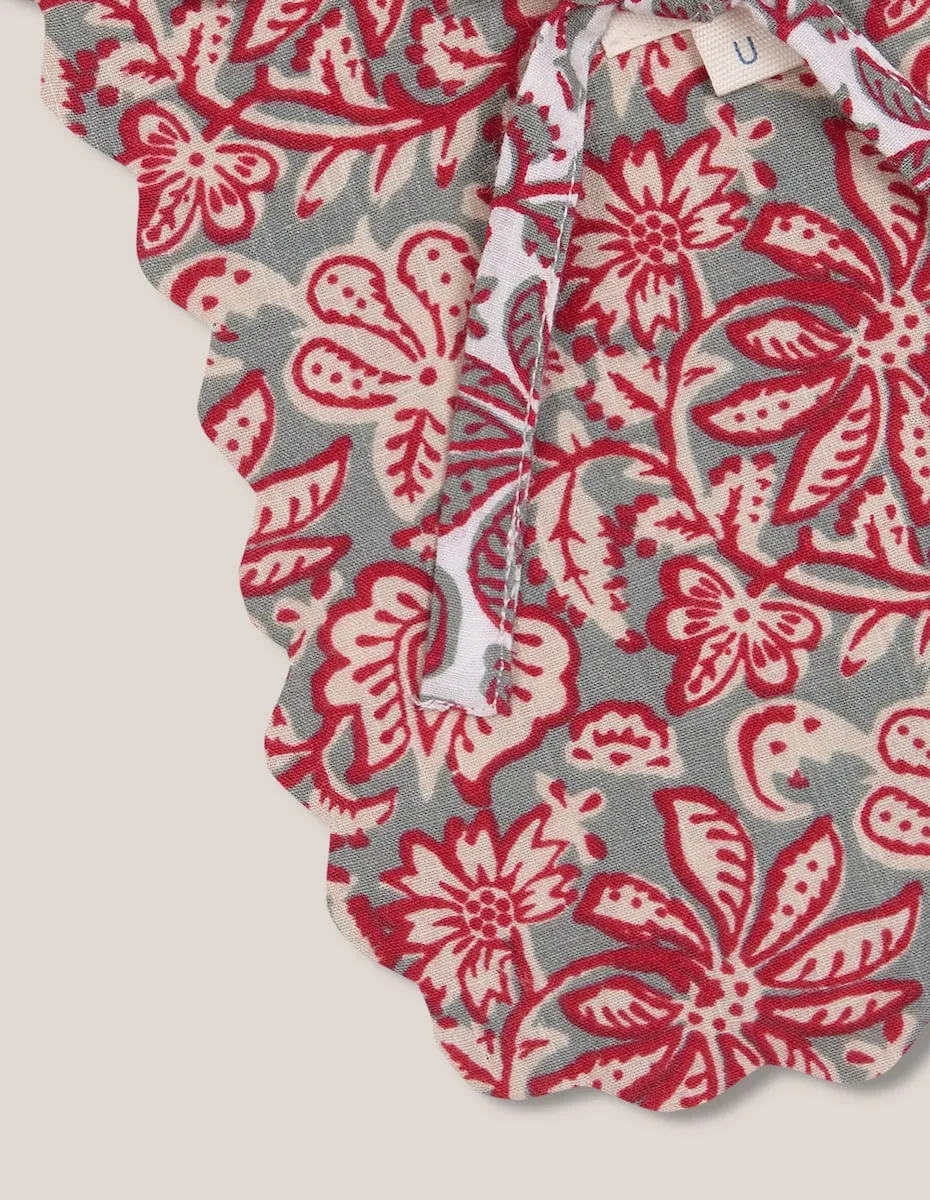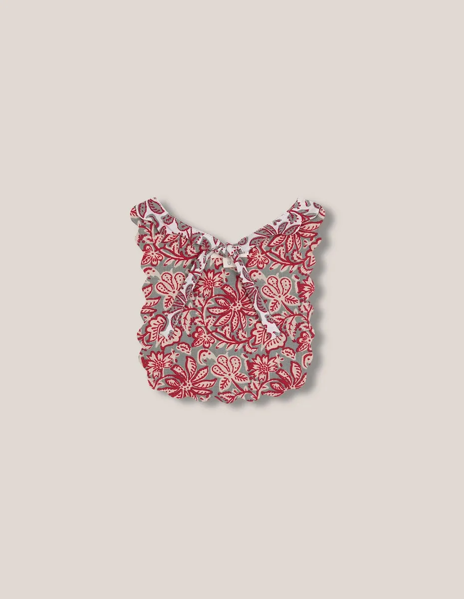 Двусторонний слюнявчик с подходящими принтами. Особый стеганый узор с волнами по краю. Закрывается на пуговицы.