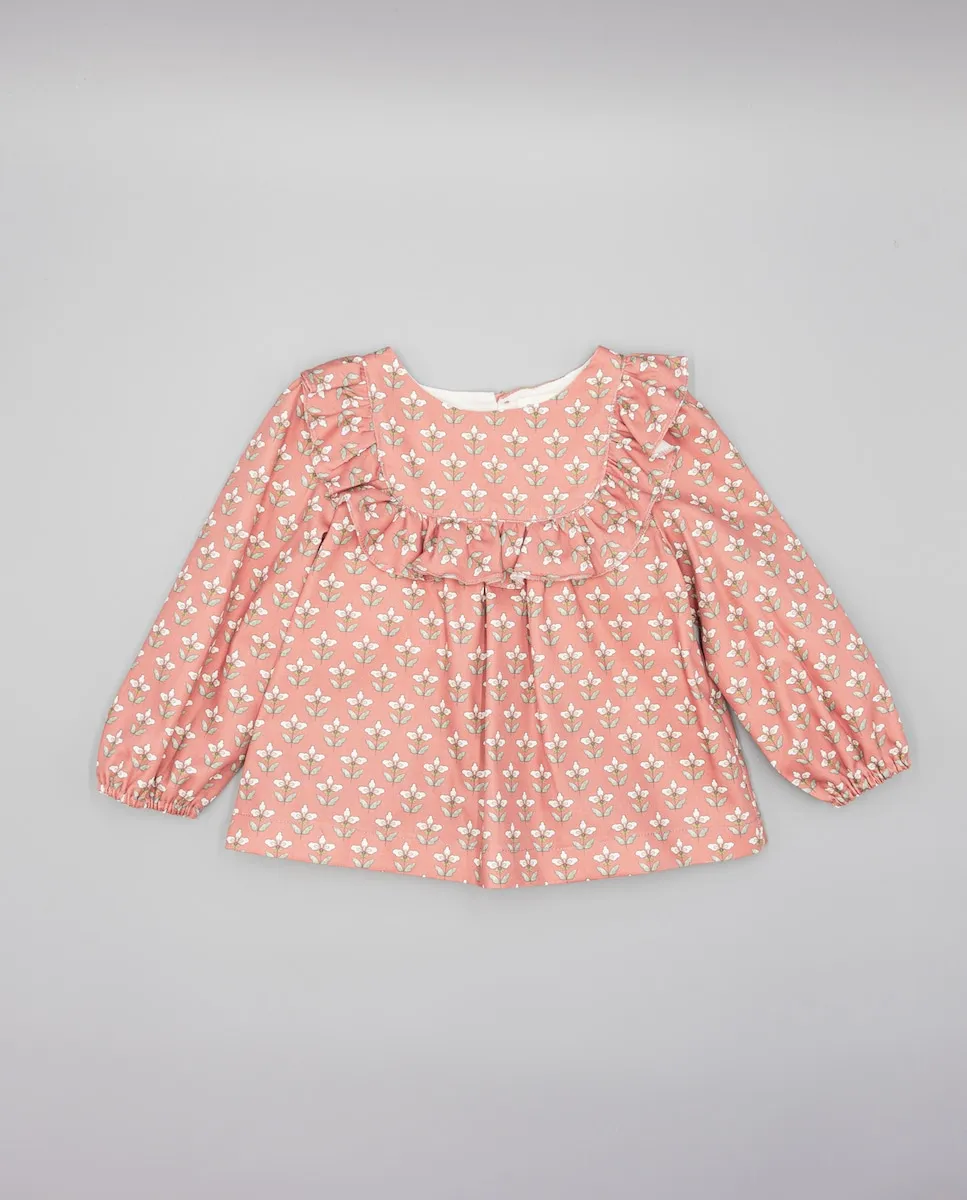 Бордовая вельветовая рубашка для девочки с нежным цветочным принтом. Воланы спереди и на спине придают женственный вид. Резинка на манжетах для дополнительного комфорта. Ткань 100% хлопок, мягкая и дышащая. Доступна в размерах от 2 до 16 лет. Идеально подходит для элегантных и повседневных образов.