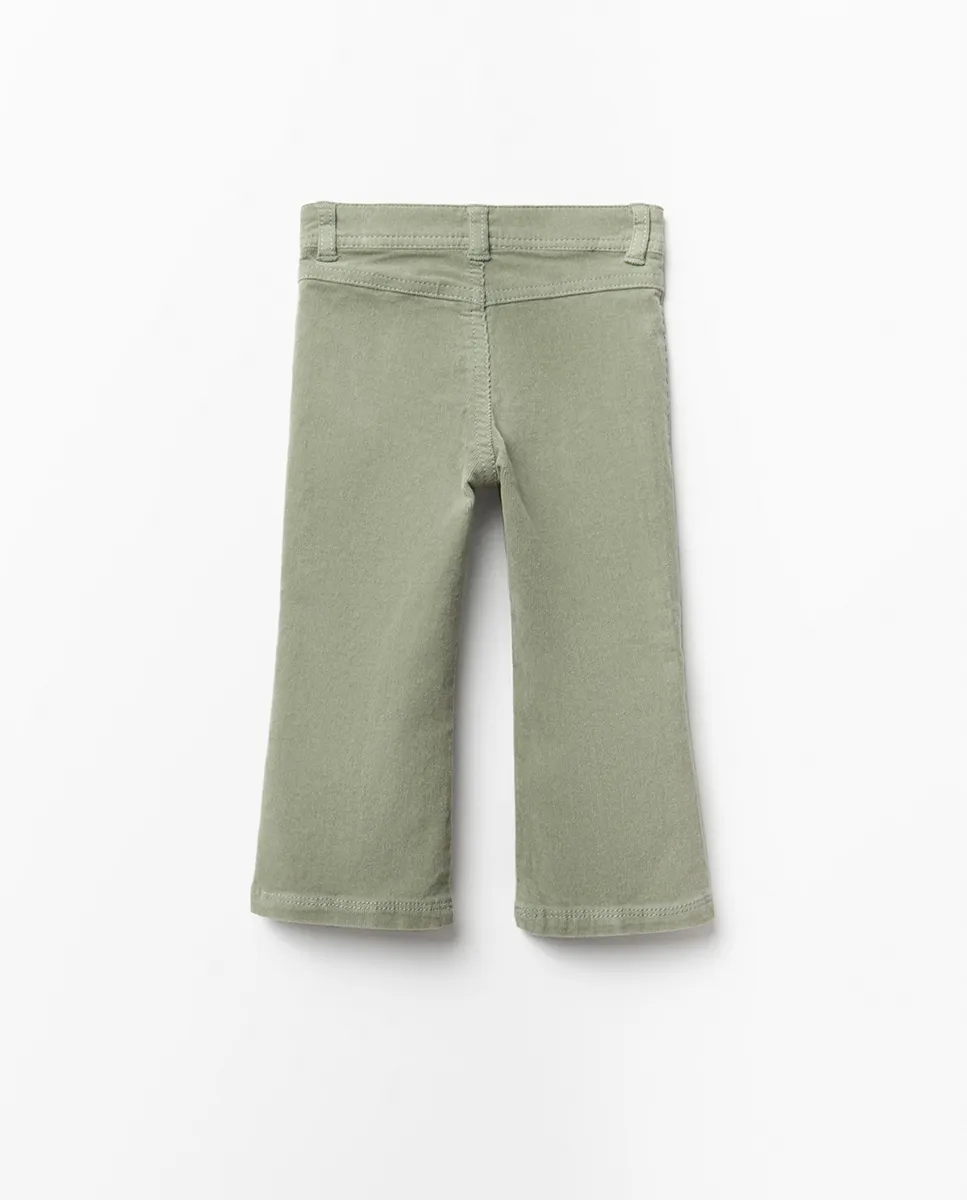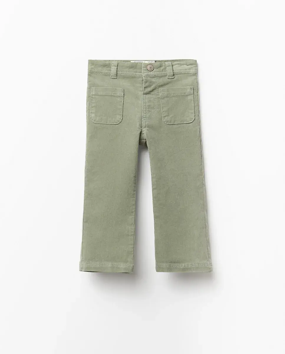 Брюки клеш из вельвета с передними карманами. Застежка на пуговицу