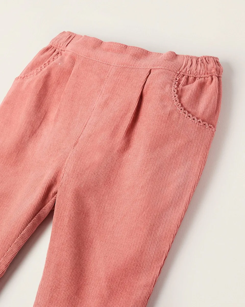 Брюки из кораллового вельвета для новорожденной, 100% хлопок. Подкладка из джерси для большего комфорта. Декоративные карманы. Для ярких образов!