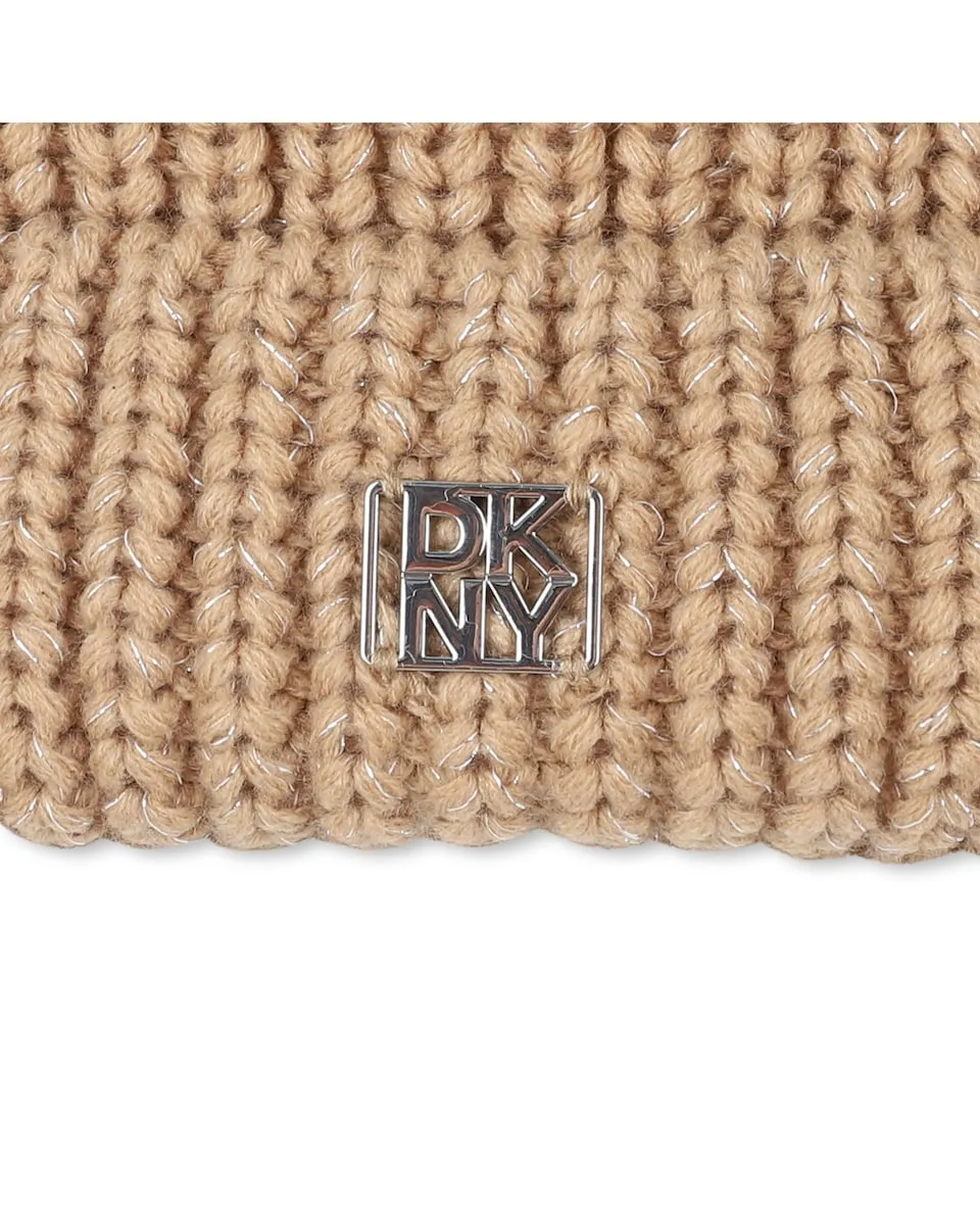 Коричневая детская шапка из акрила DKNY