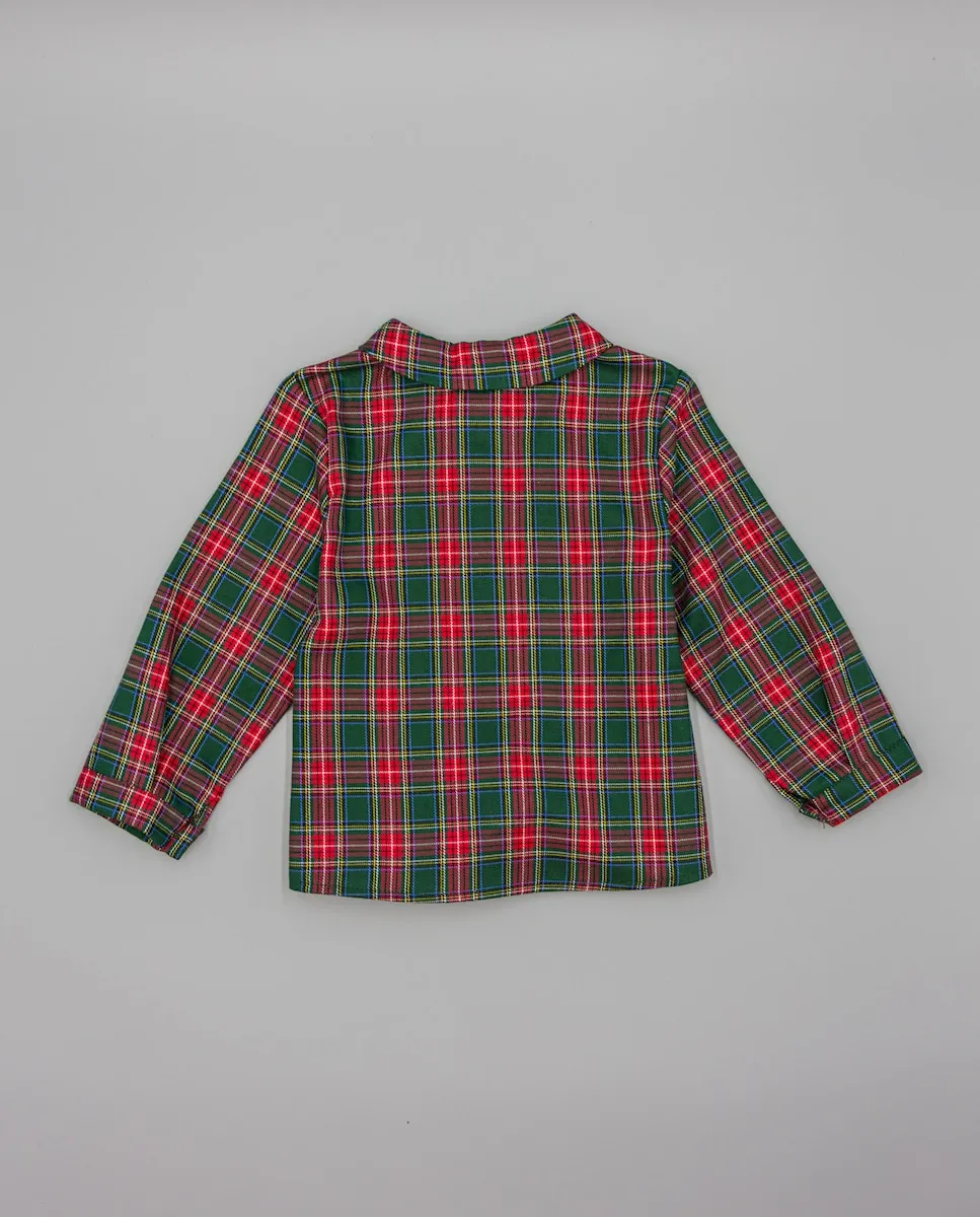 Рубашка из фланели в клетку зеленого, красного, желтого и синего цветов. Рубашечный воротник. Пуговицы из натуральной смолы. 100% хлопок. Доступна с 3 месяцев до 14 лет.