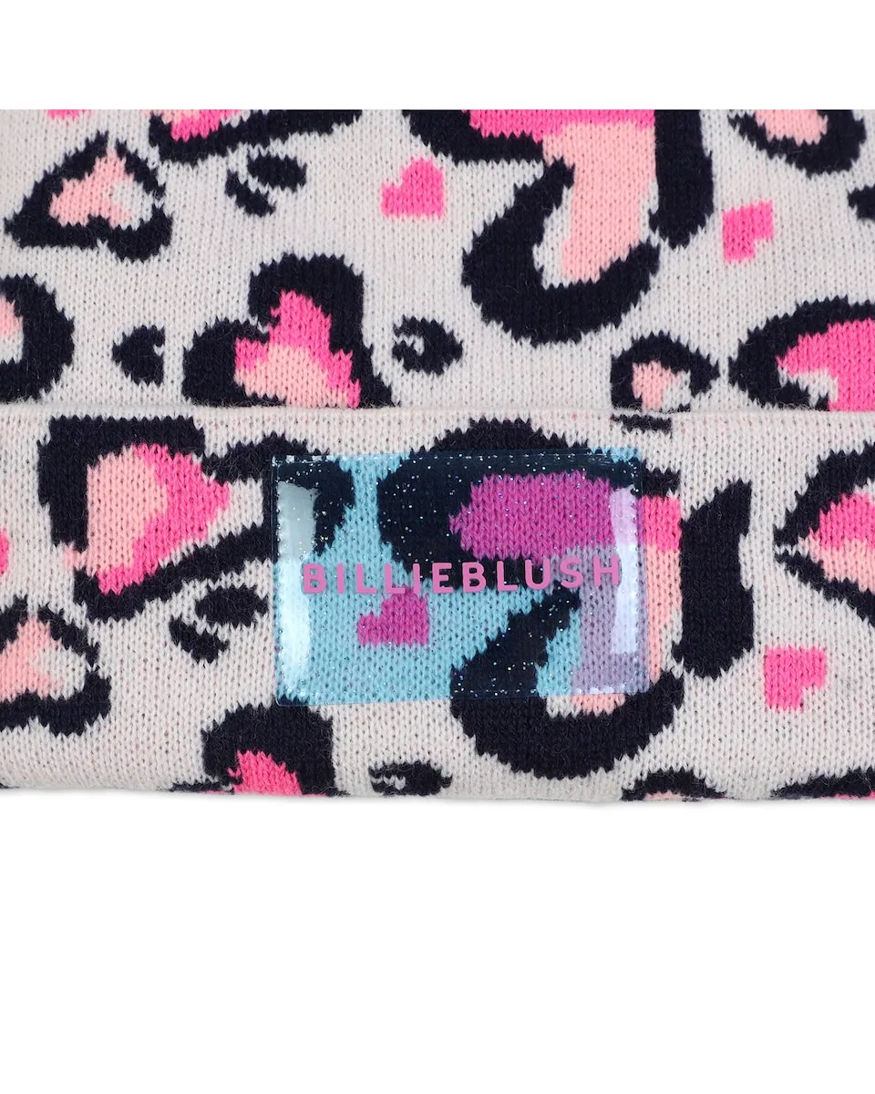 Добавьте дикость и яркость образу вашего ребенка с этой жаккардовой шапкой с леопардовым узором от BILLIEBLUSH. Двухслойная конструкция обеспечивает тепло и комфорт, а значок из ПВХ с блестками от BILLIEBLUSH добавляет яркий и современный штрих. Идеальная модель для уникального и комфортного стиля.