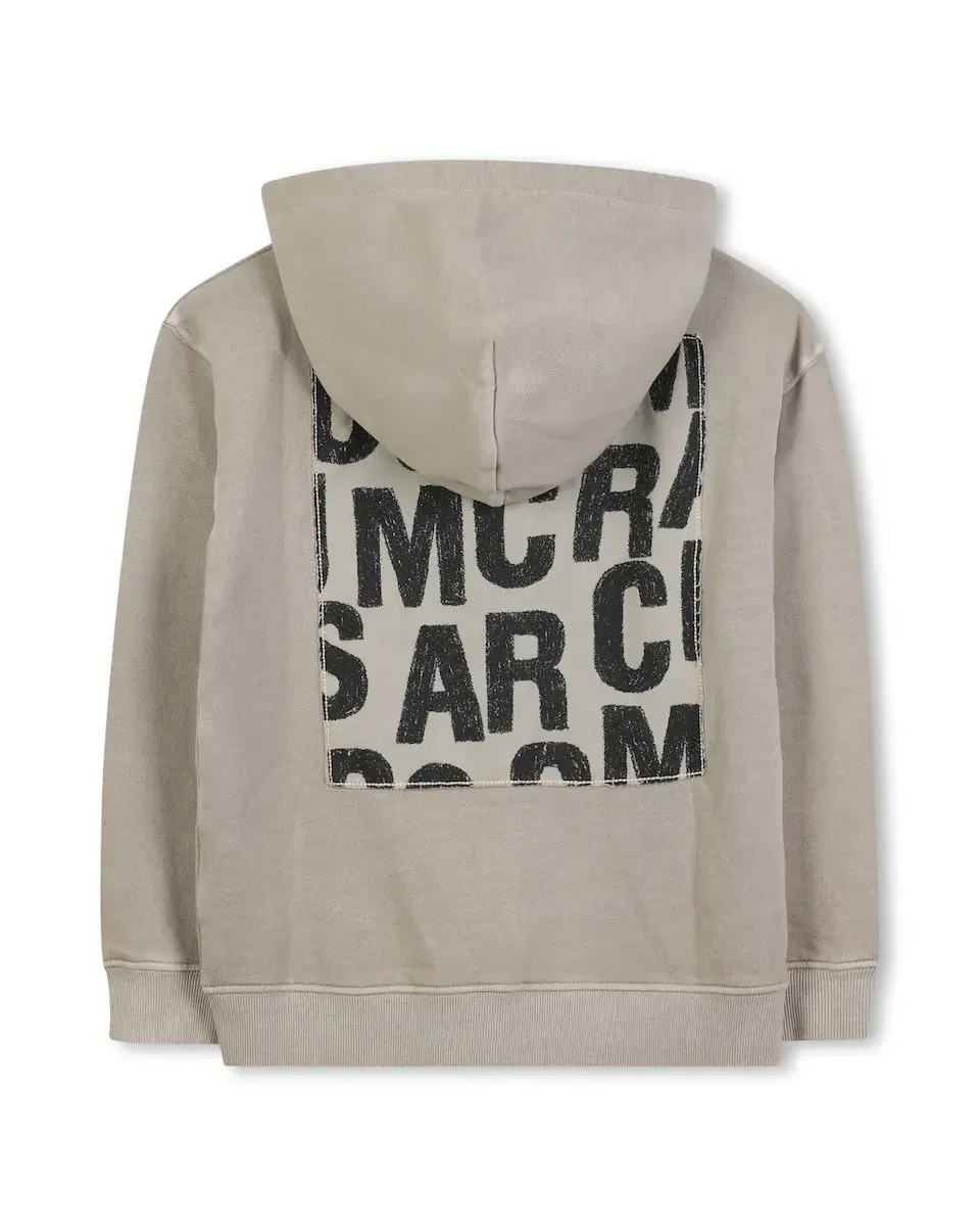 Созданный для молодых начинающих художников, этот кардиган с капюшоном имеет городской и оригинальный вид. Мягкая флисовая ткань подчеркнута яркими крапинами краски, а силиконовый логотип MARC JACOBS добавляет современный акцент. Концовый кант из саржи на спине, украшенный мотивом "MONOGRAMME", завершает этот графический предмет с ярким характером.