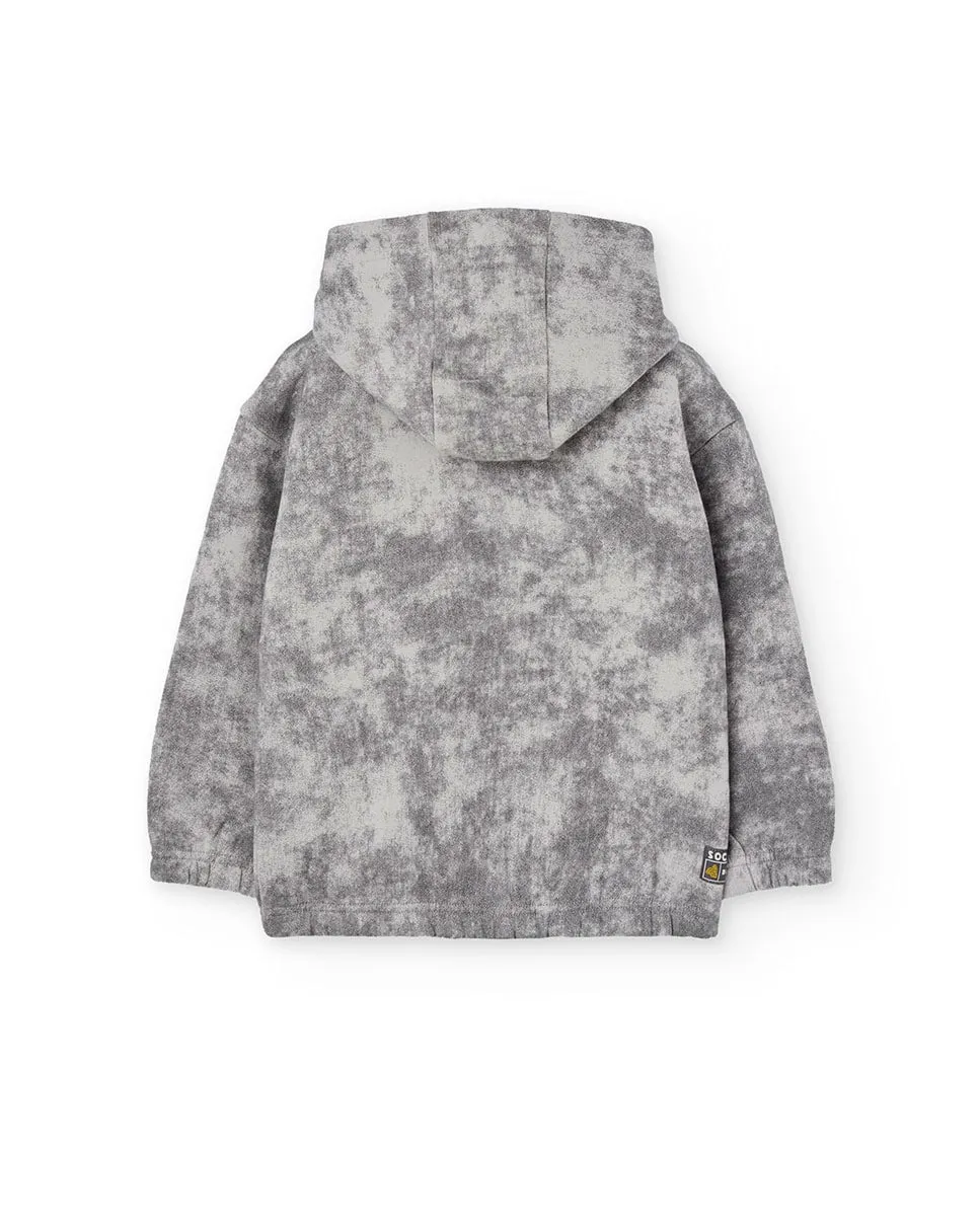 Свитшот, выполненный из серого меланжевого трикотажа, идеален для осенне-зимнего периода, обеспечивая тепло и комфорт. Дизайн с ненавязчивым текстом на передней части придает современный и элегантный вид. Доступен в размерах от 2 до 14 лет, легко комбинируется с джинсами или повседневными брюками, создавая универсальный городской образ для разных случаев.
