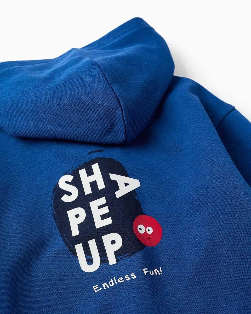 Синяя куртка с капюшоном для мальчика, 100% хлопок. Принт на груди и спине. Карманы кенгуру. Опущенные плечи для более свободной посадки. Манжеты и нижняя часть в рубчик для идеальной посадки. Отличный вариант для повседневного и комфортного образа!