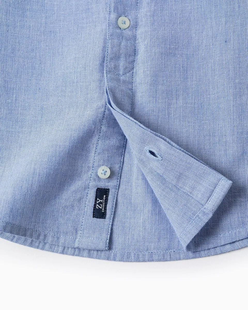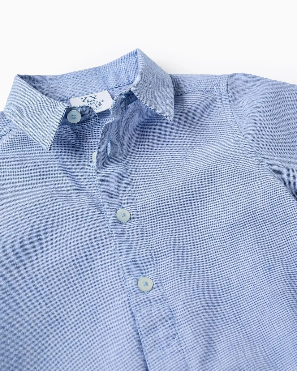 Рубашка для мальчика, 100% хлопок, ткань в рубчик Zippy, синий