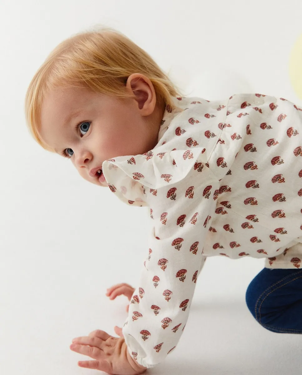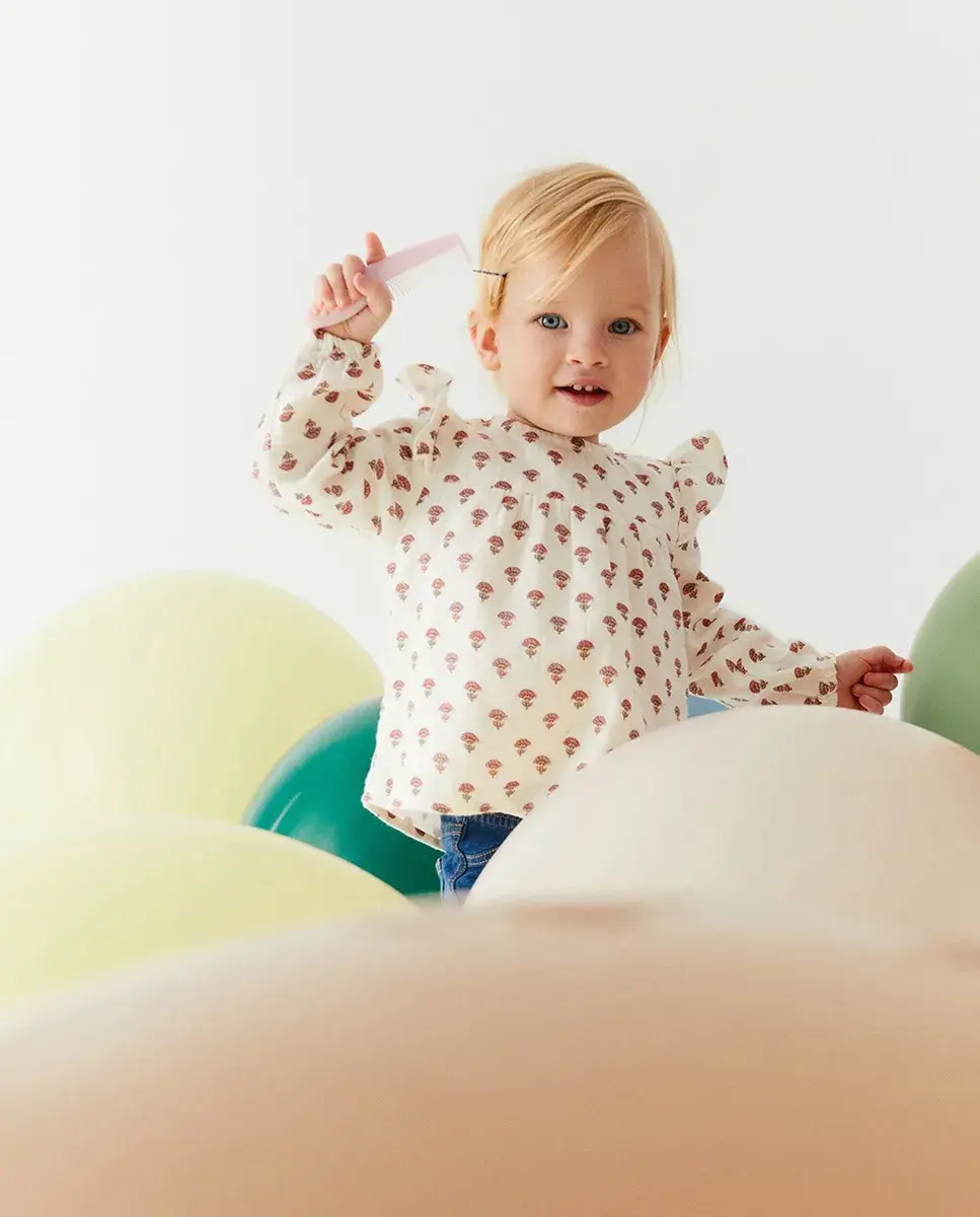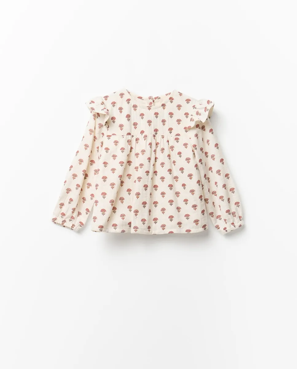 Блузка с длинными рукавами из бамбула с рюшами и застежкой сзади на пуговицы. 100% хлопок
