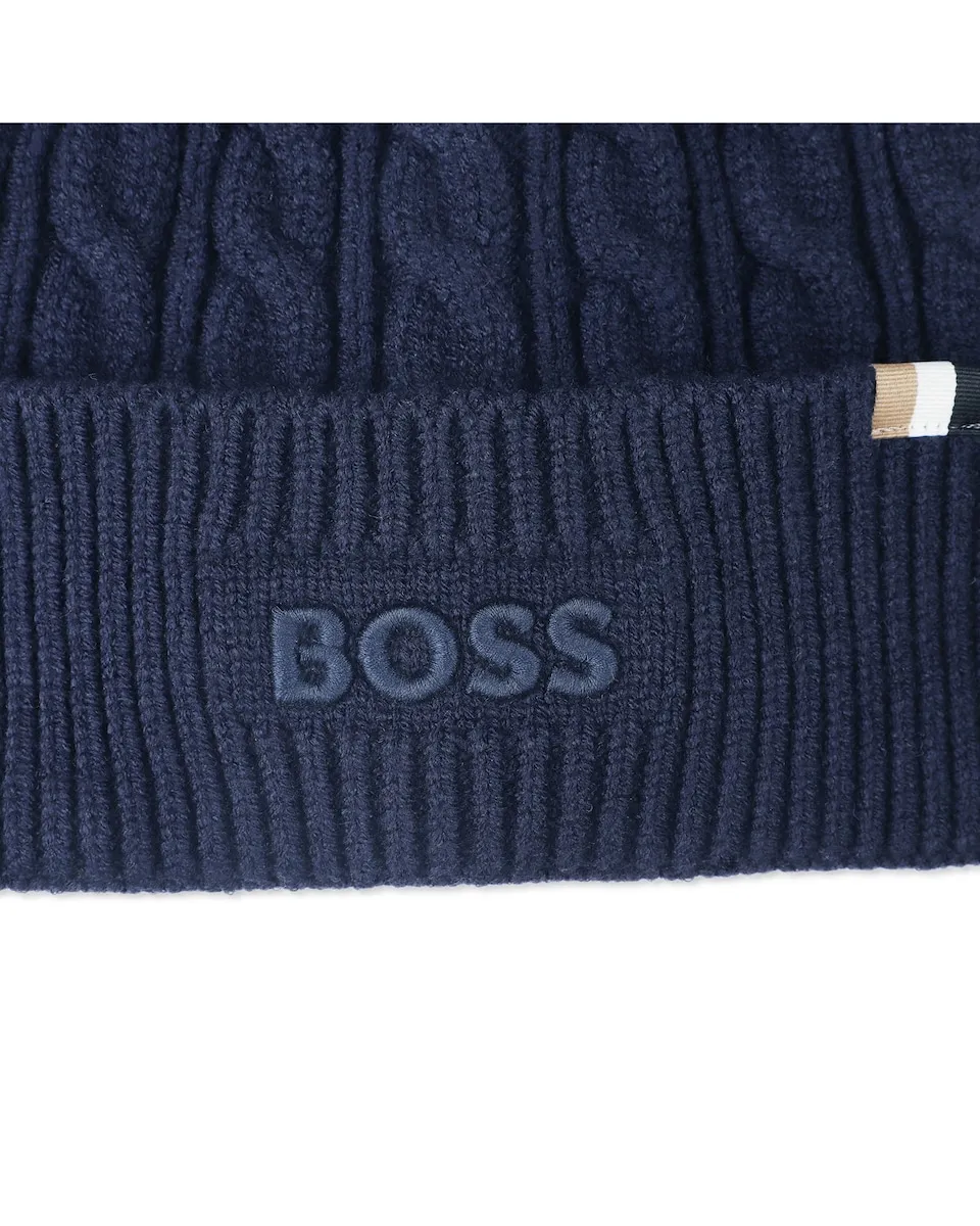 Эта вязаная шапка с косами от BOSS сочетает в себе комфорт и стиль. Вышитый логотип на передней части и тканая этикетка с фирменными полосками добавляют современный и изысканный штрих. Идеальная модель, чтобы согреть голову с элегантной и авторской ноткой.