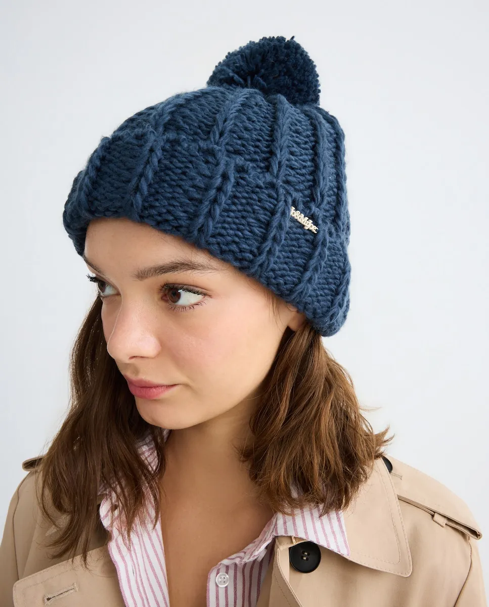 Шапка вязка с помпоном Jo & Mr. Joe, синий
