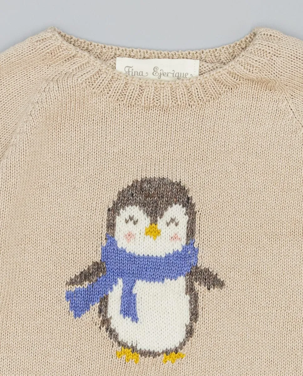 Вязаный детский джемпер с пингвином Fina Ejerique, бежевый