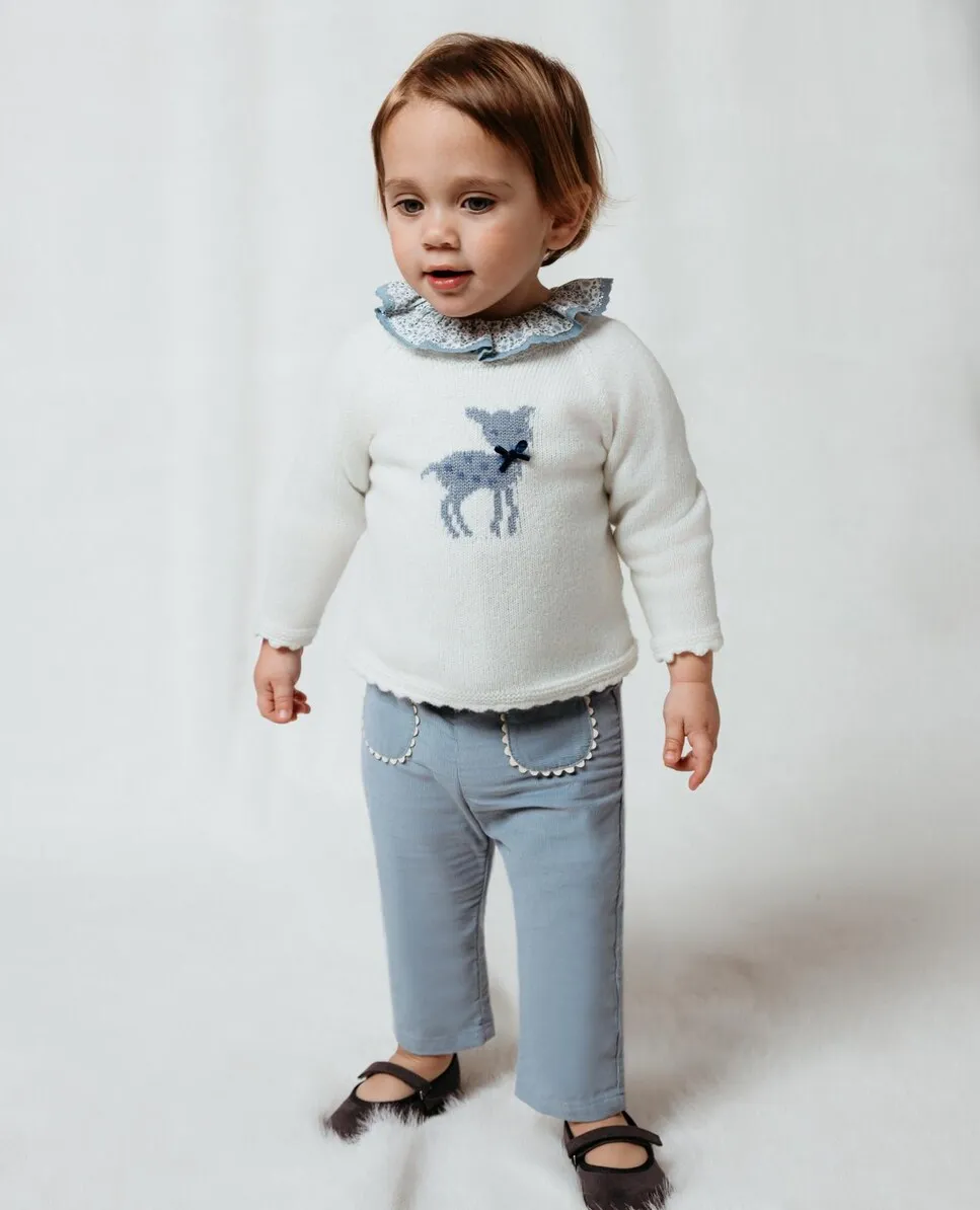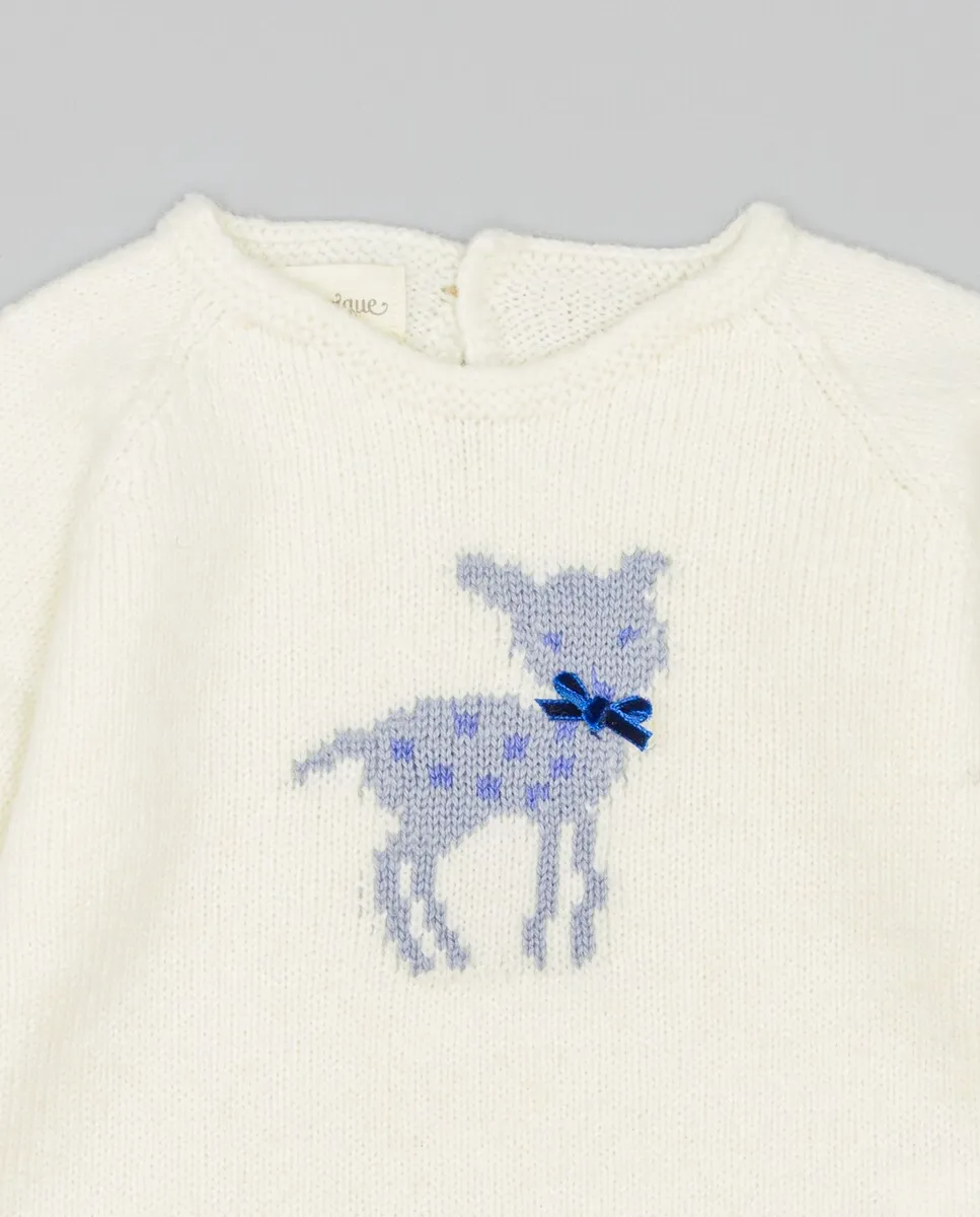 Вязаный детский свитер с оленем и бантом Fina Ejerique, белый