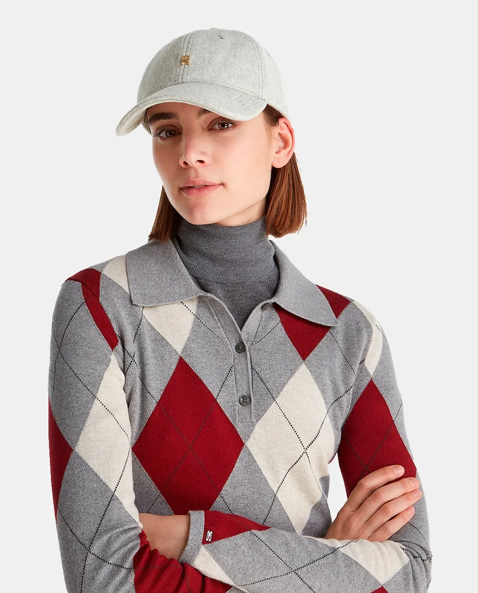 Женская шапка, изготовленная из переработанной шерсти светло-серого цвета. Дизайн с металлическим логотипом TH на передней части.