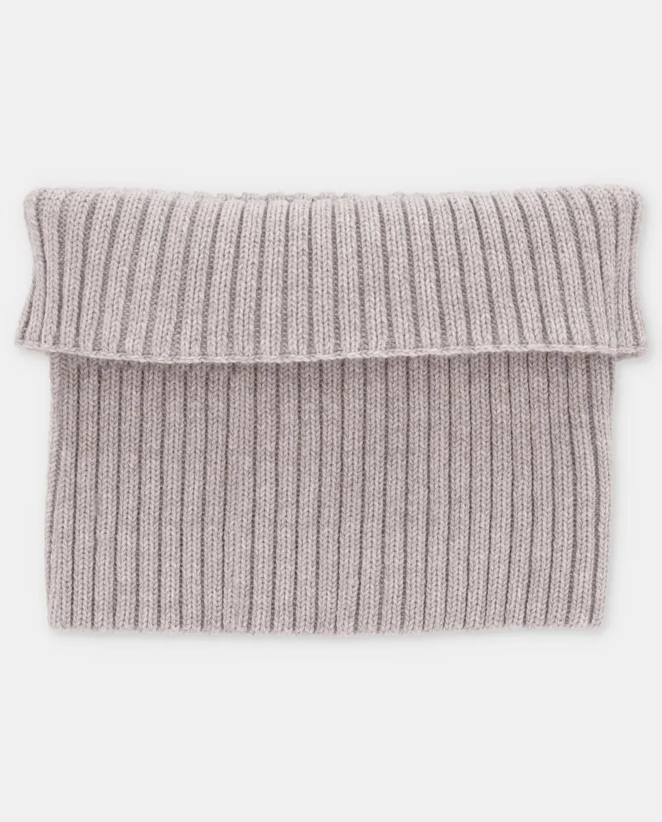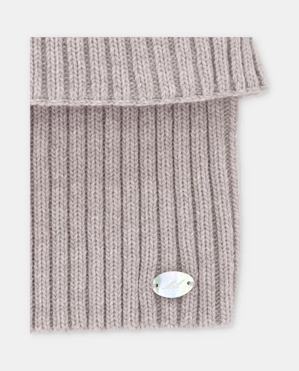 Вязаный детский воротник с ребристой структурой и овальной табличкой цвета тауп. Изготовлено в Испании.