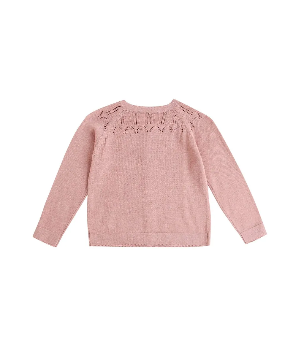 Детский трикотажный свитер для девочки с круглым вырезом, с ажурными деталями и длинными рукавами, мягкий и очаровательный, идеально подходит для любого случая со стилем.