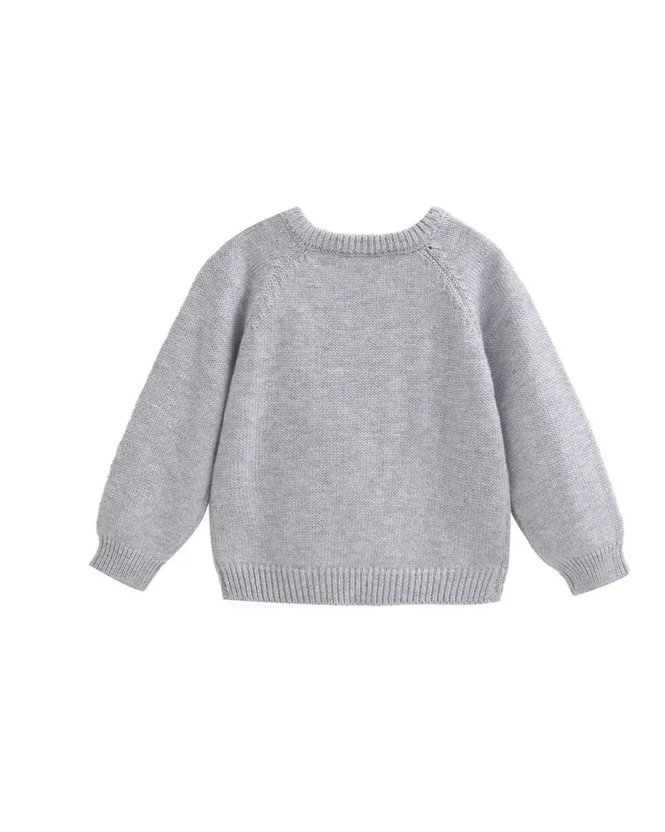 Вязаный детский свитер для мальчика с вышитым рисунком, круглый вырез с боковыми пуговицами, длинные рукава, теплый, удобный и идеальный для повседневной носки.