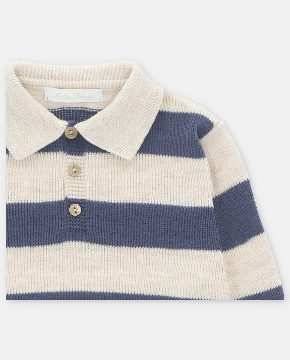 Детский джемпер с воротником поло и синими полосками Martín Aranda