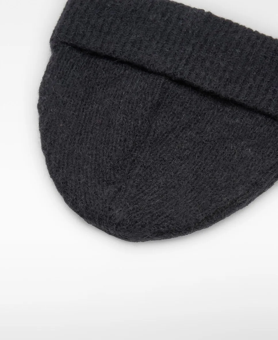 Шапка-бини в рубчик с отворотом. Снаружи нашивка с логотипом.